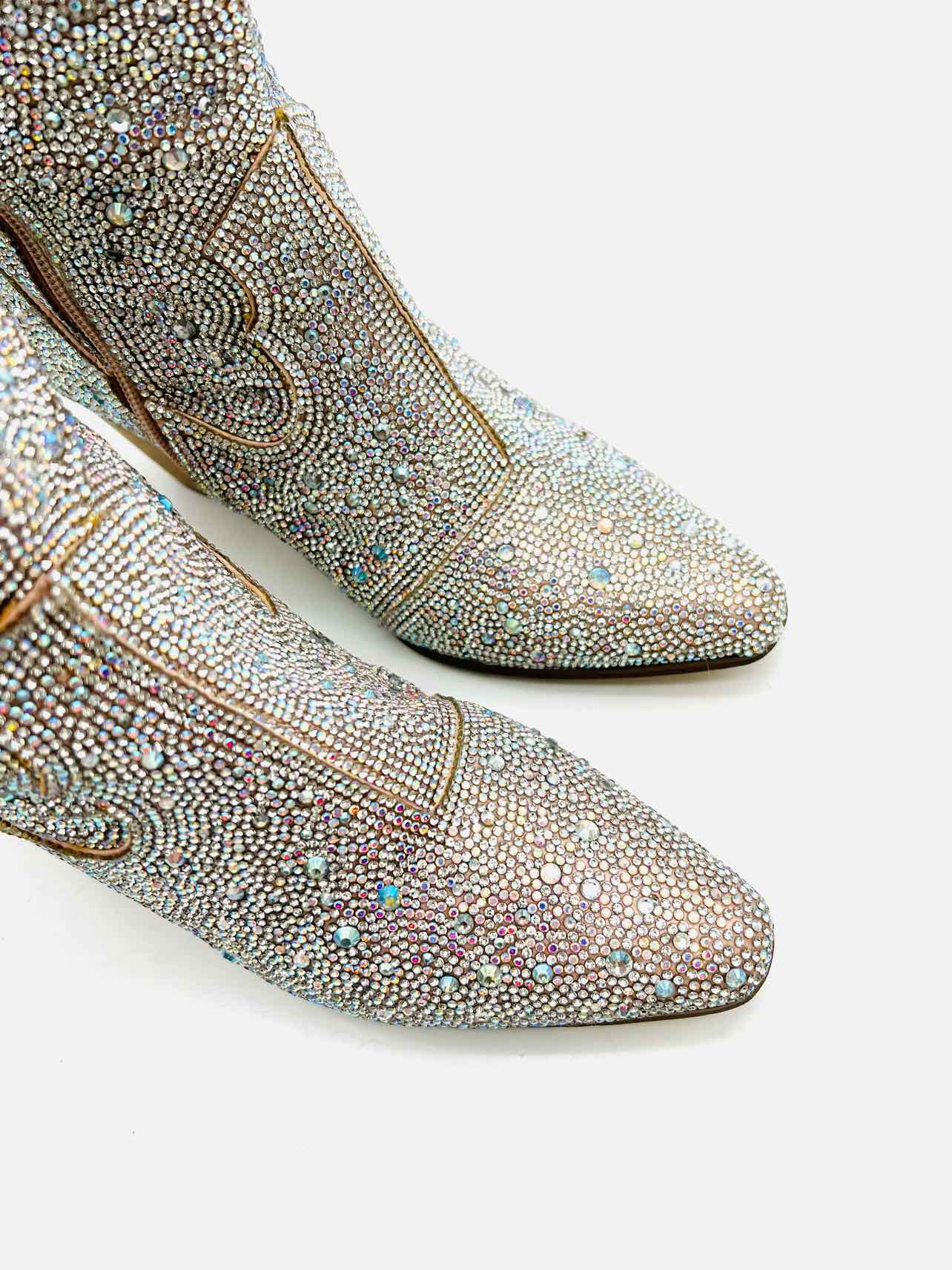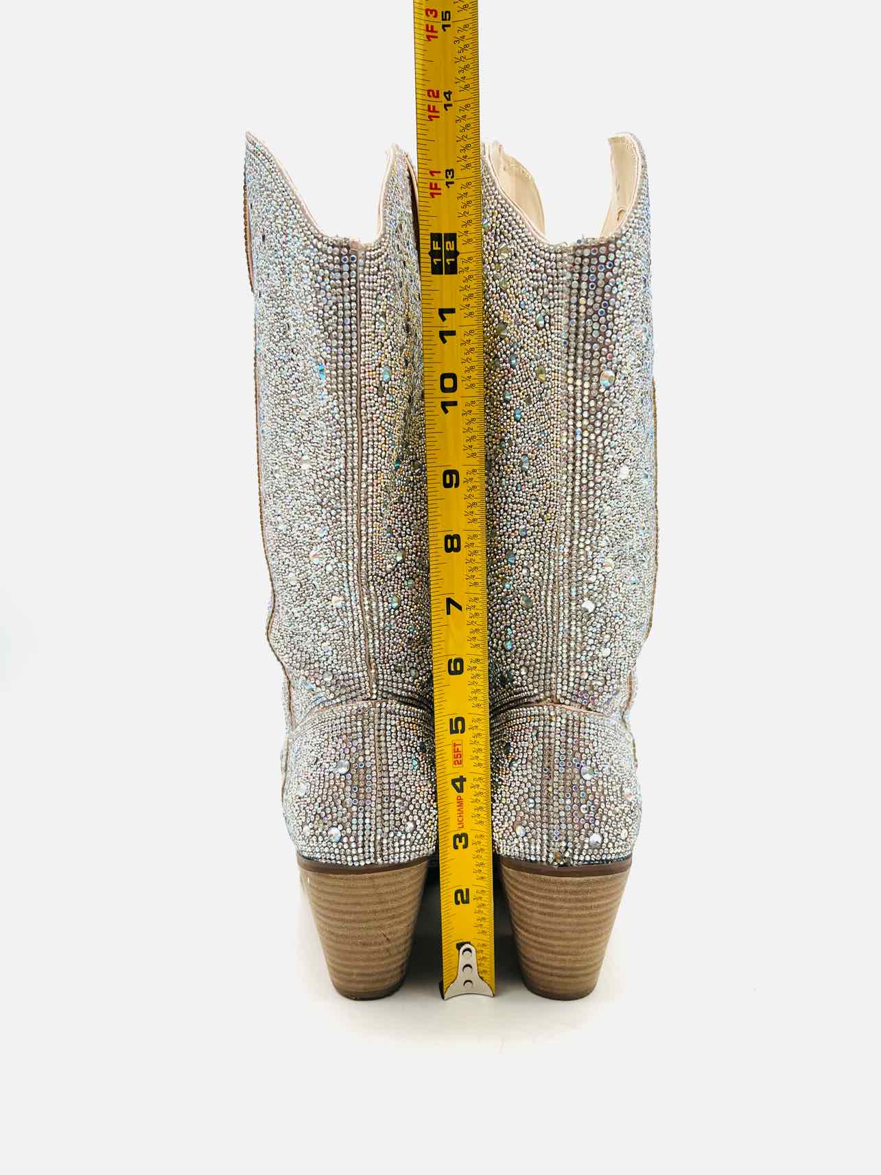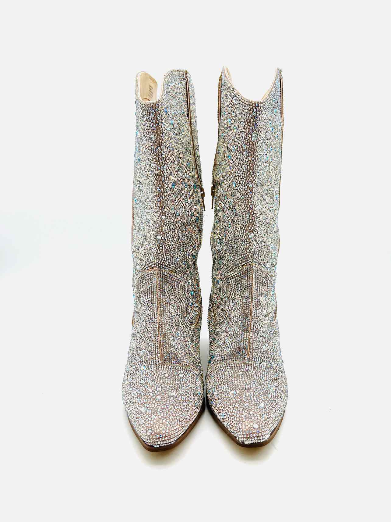 Arula Size 8 Beige/Silver Iridescent Embellished Shoes Cowboy Boots