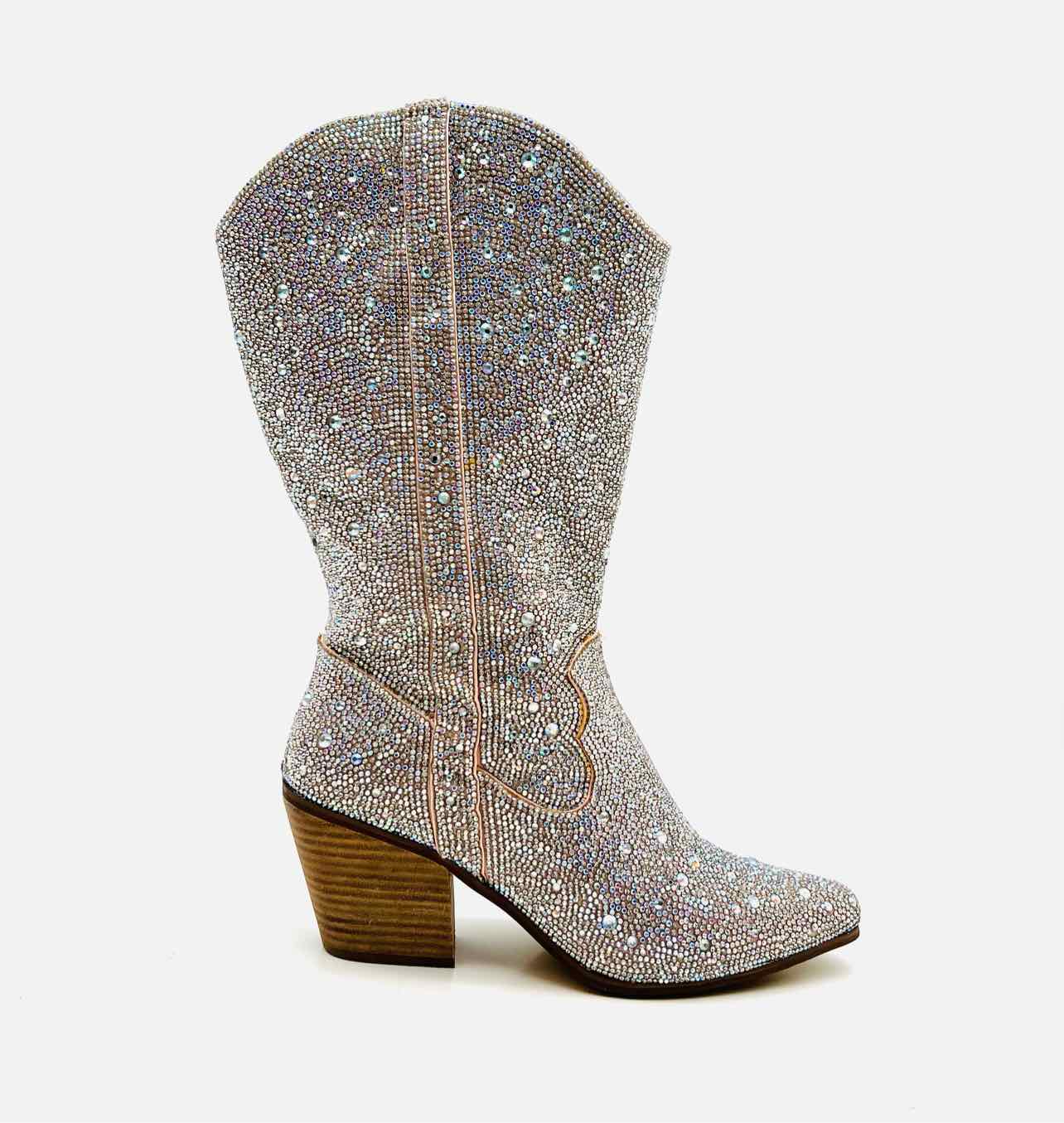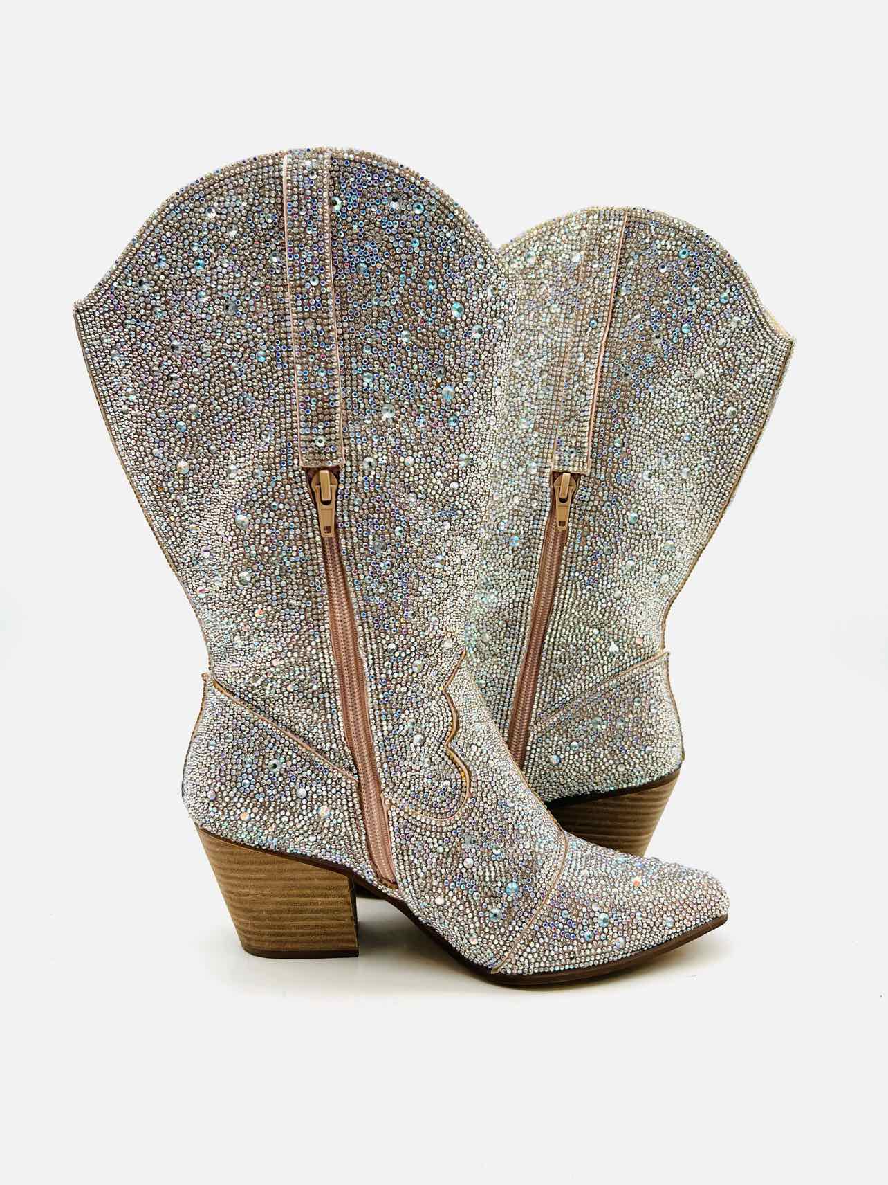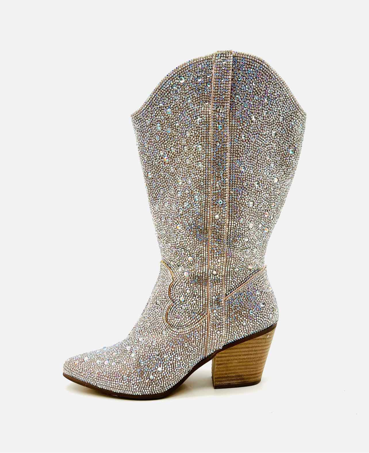 Arula Size 8 Beige/Silver Iridescent Embellished Shoes Cowboy Boots
