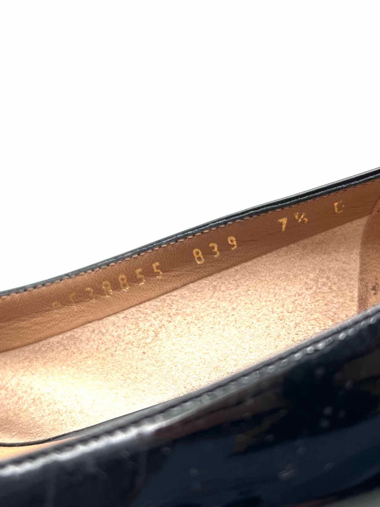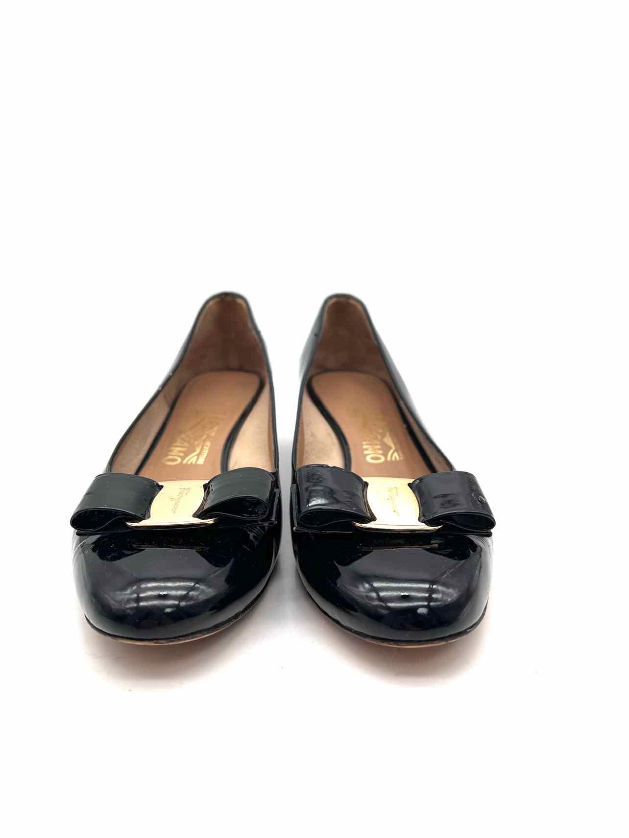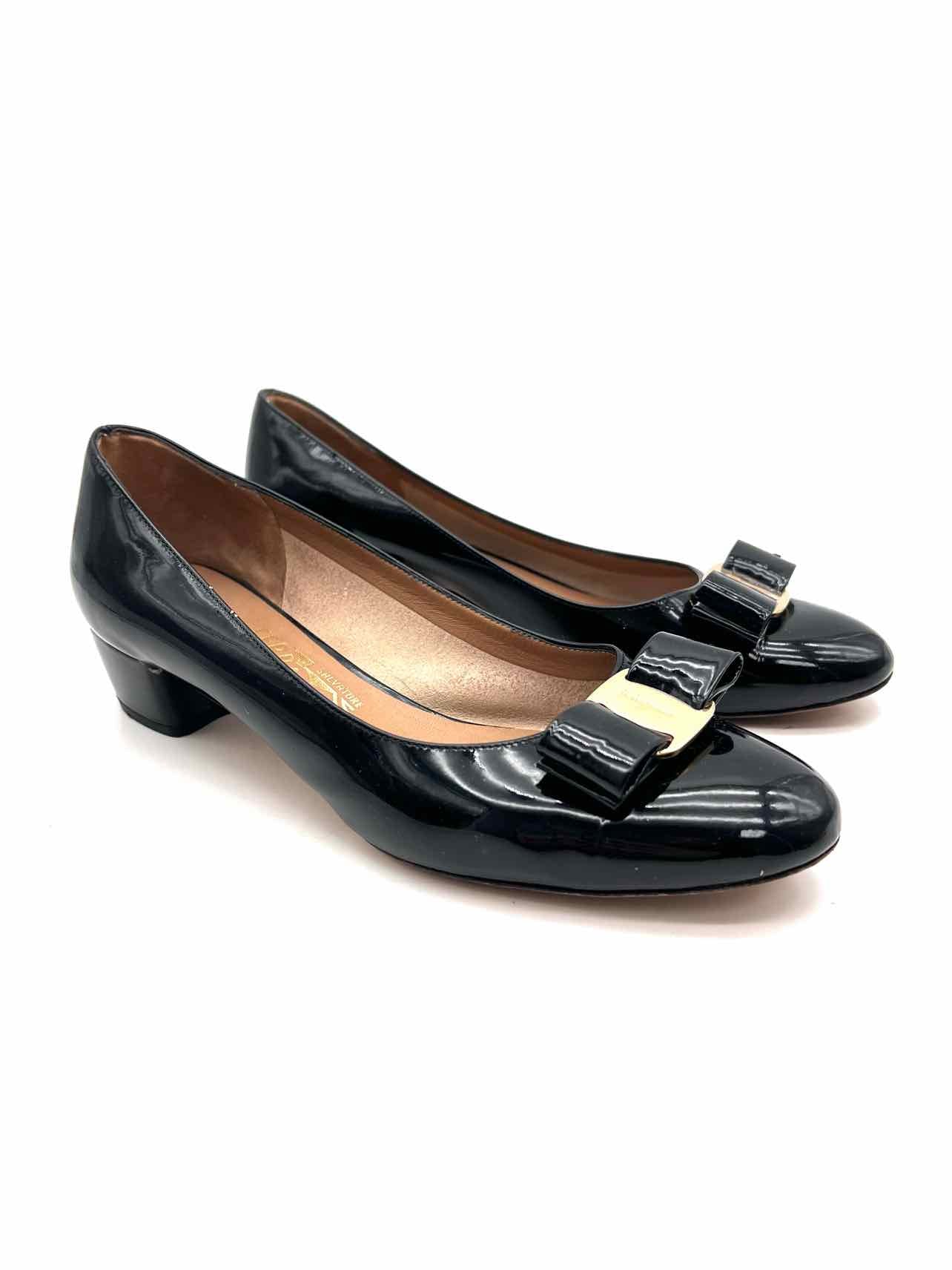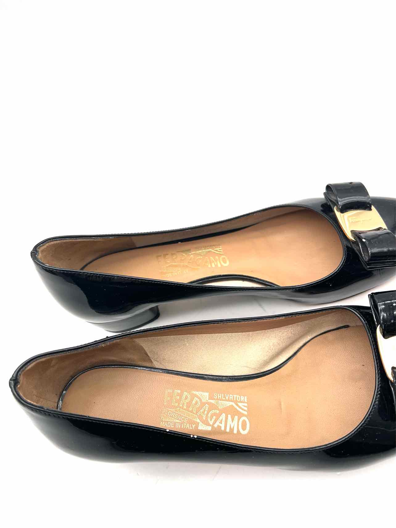 Salvatore Ferragamo Size 7.5 Black Bow(s) Patent Leather Shoes Heels