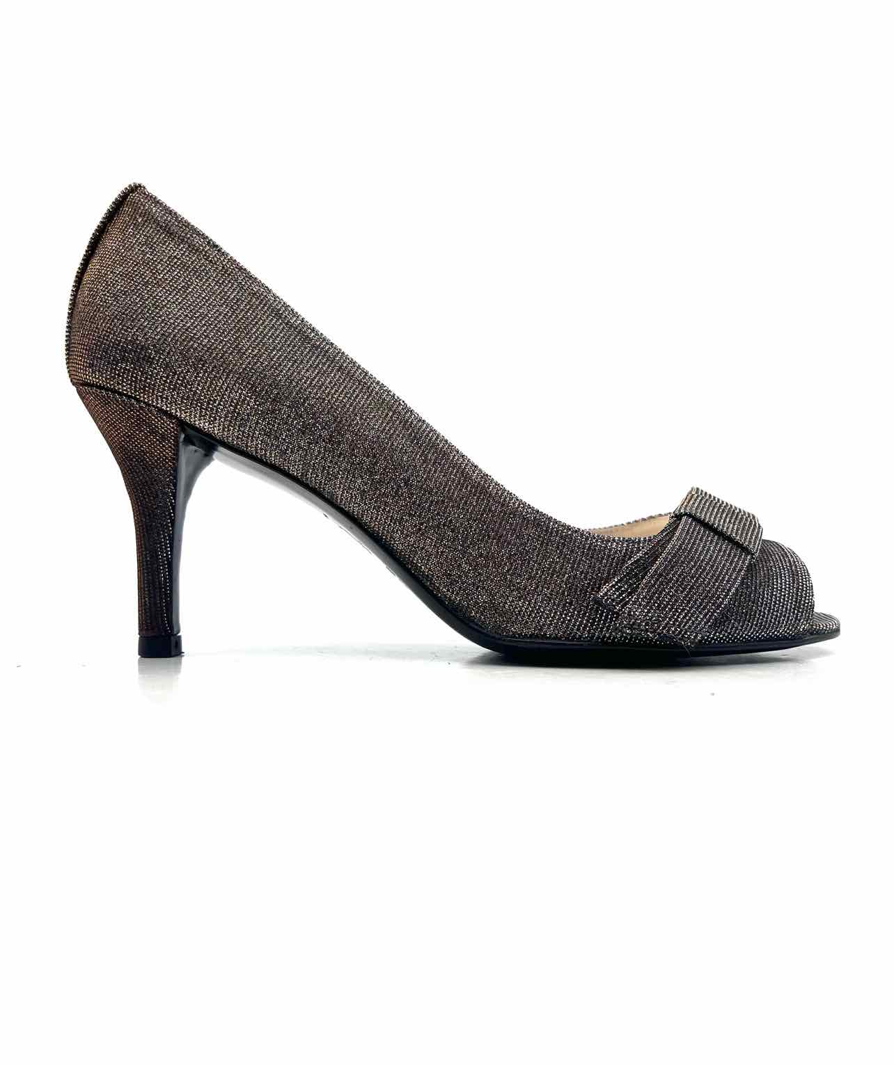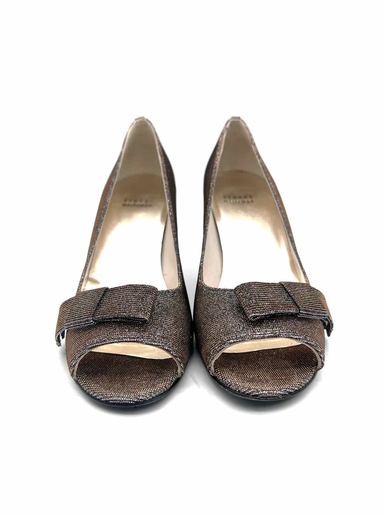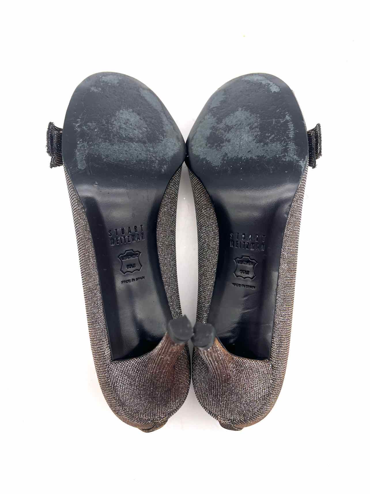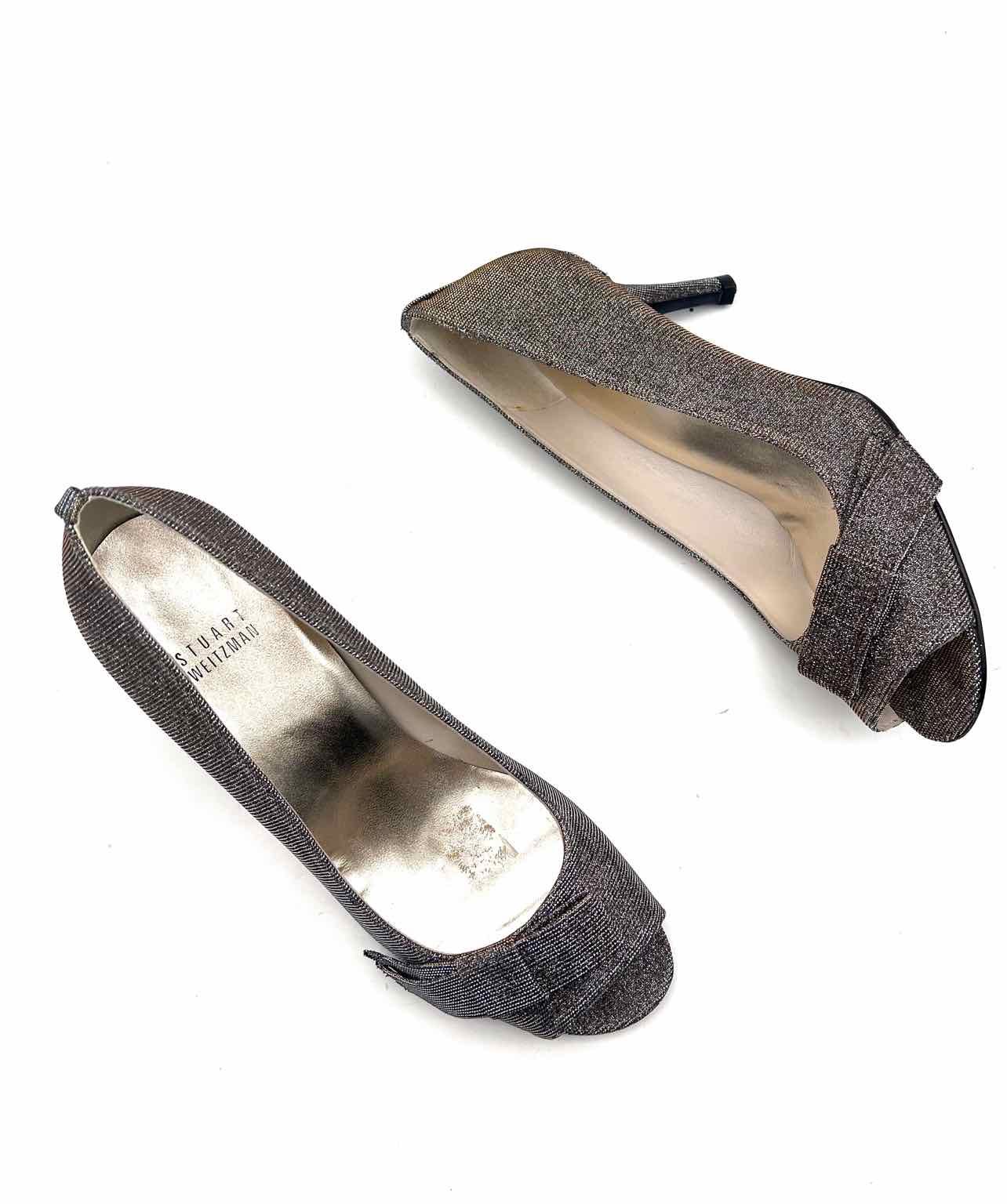 Stuart Weitzman Size 8 Silver/Gold Peep Toe Glitter Shoes Pumps