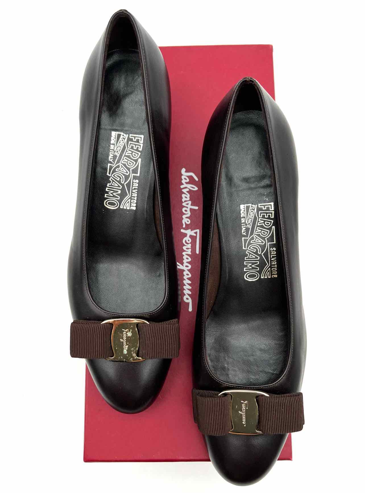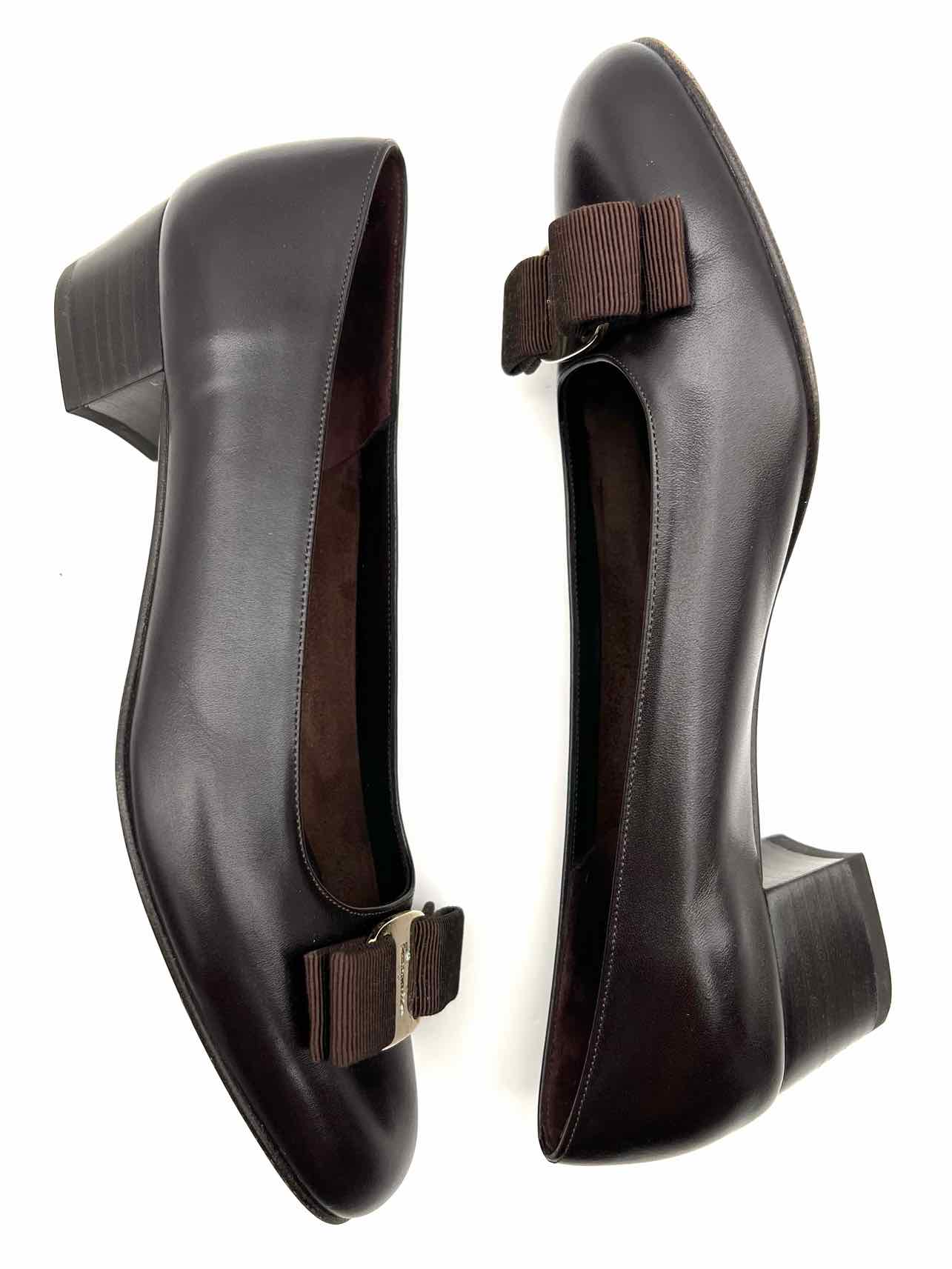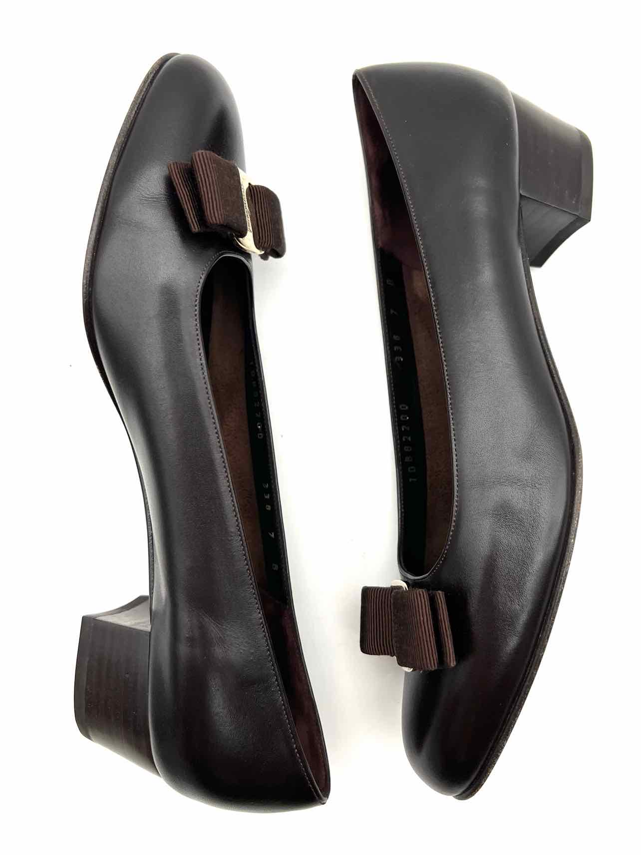 Salvatore Ferragamo Size 7 Chocolate Bow(s) Leather Shoes Heels