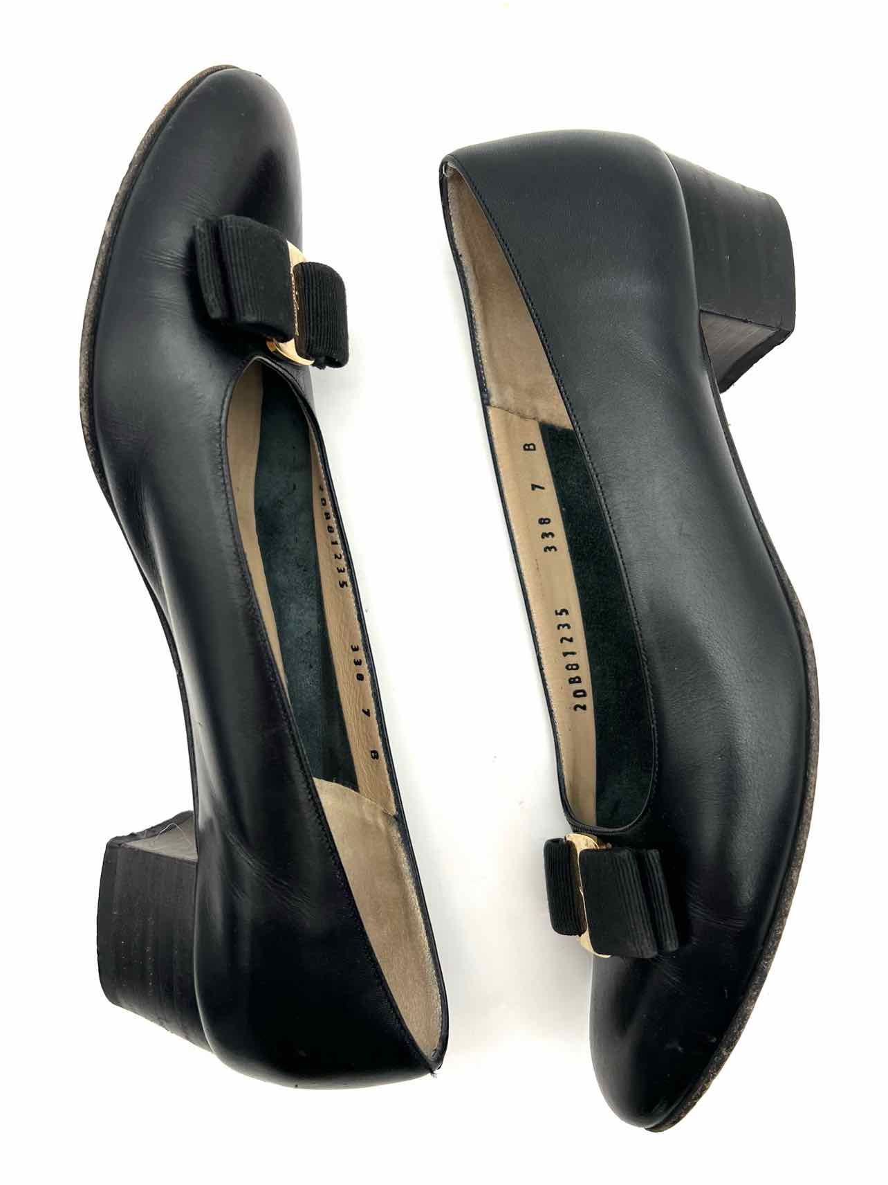 Salvatore Ferragamo Size 7 Black Bow(s) Leather AS IS Shoes Heels