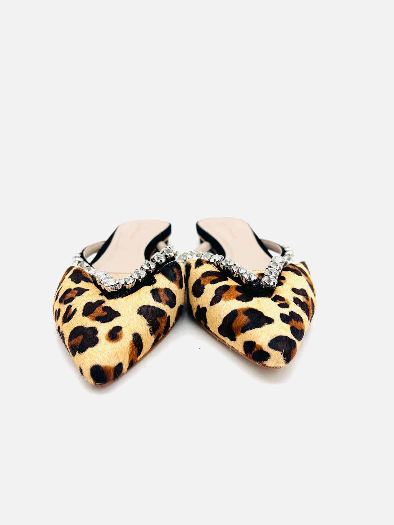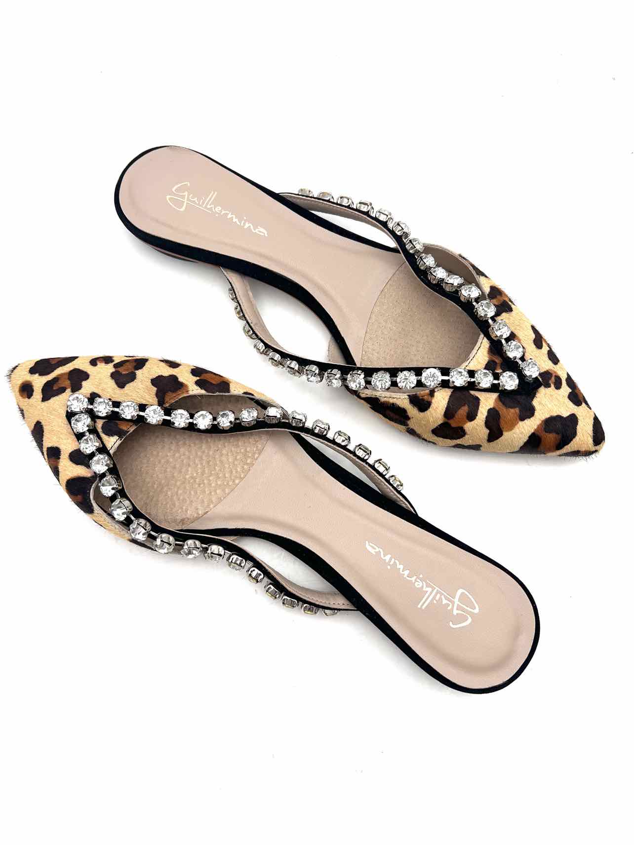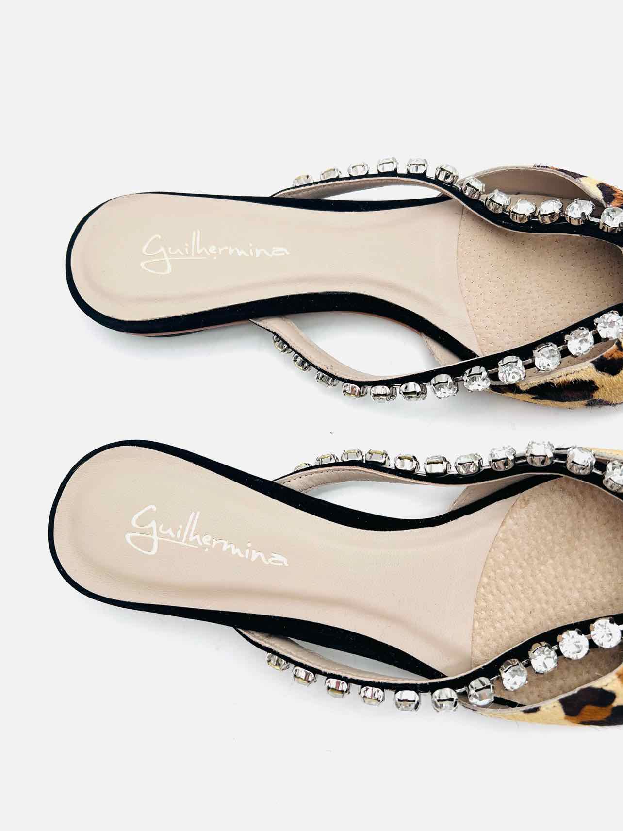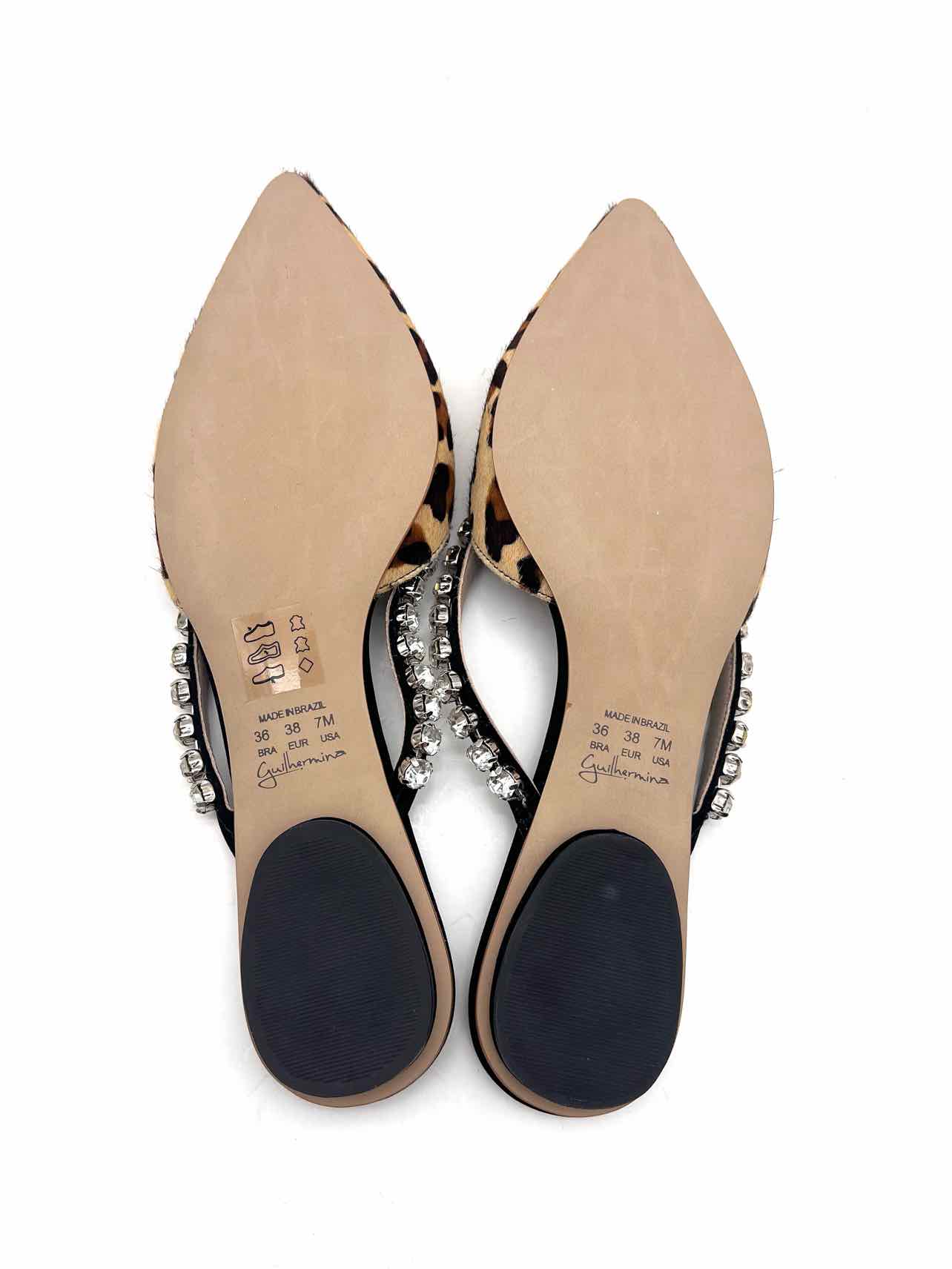 Guilhermina Size 7 Beige/Brown Animal Print Cow Hair Shoes Mules