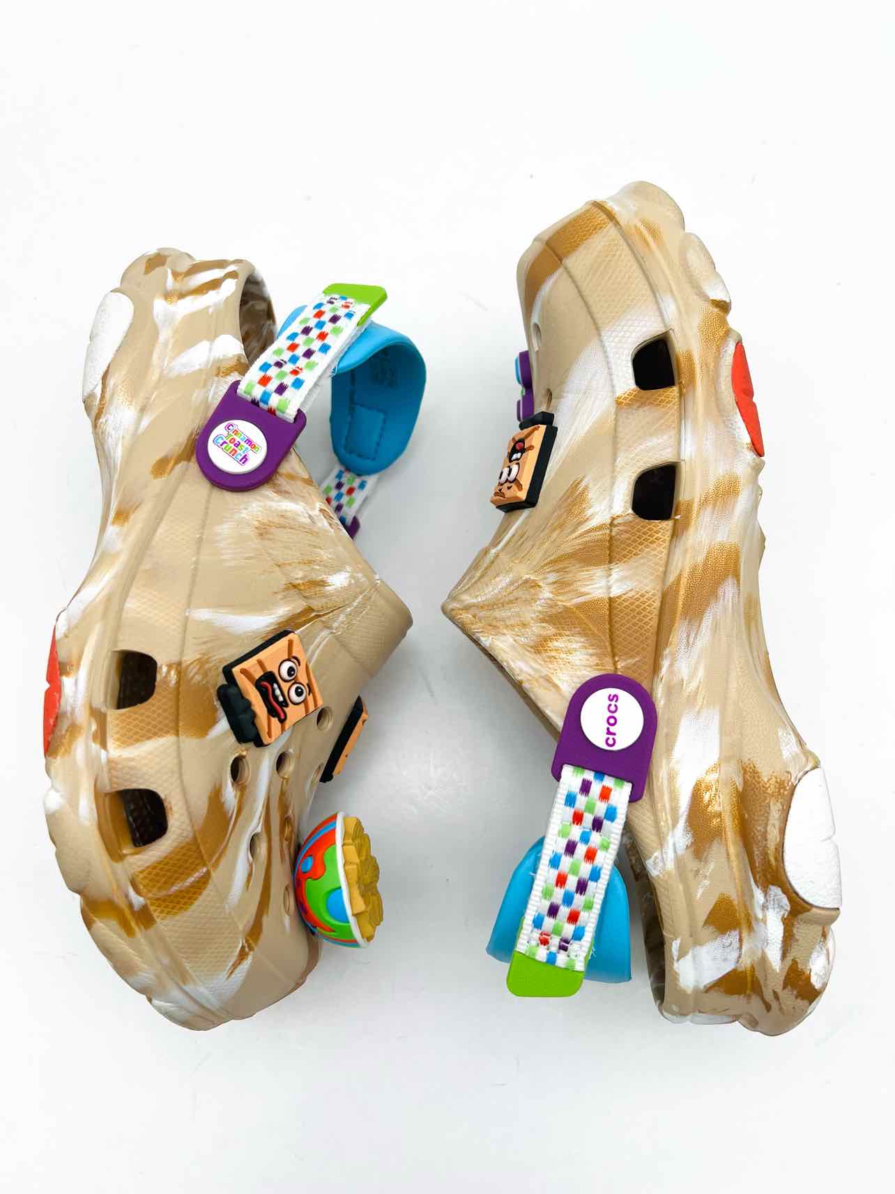 Crocs Size 6 ? Tan/Multi-color Marbled Rubber W/ BOX!!! Shoes Clogs