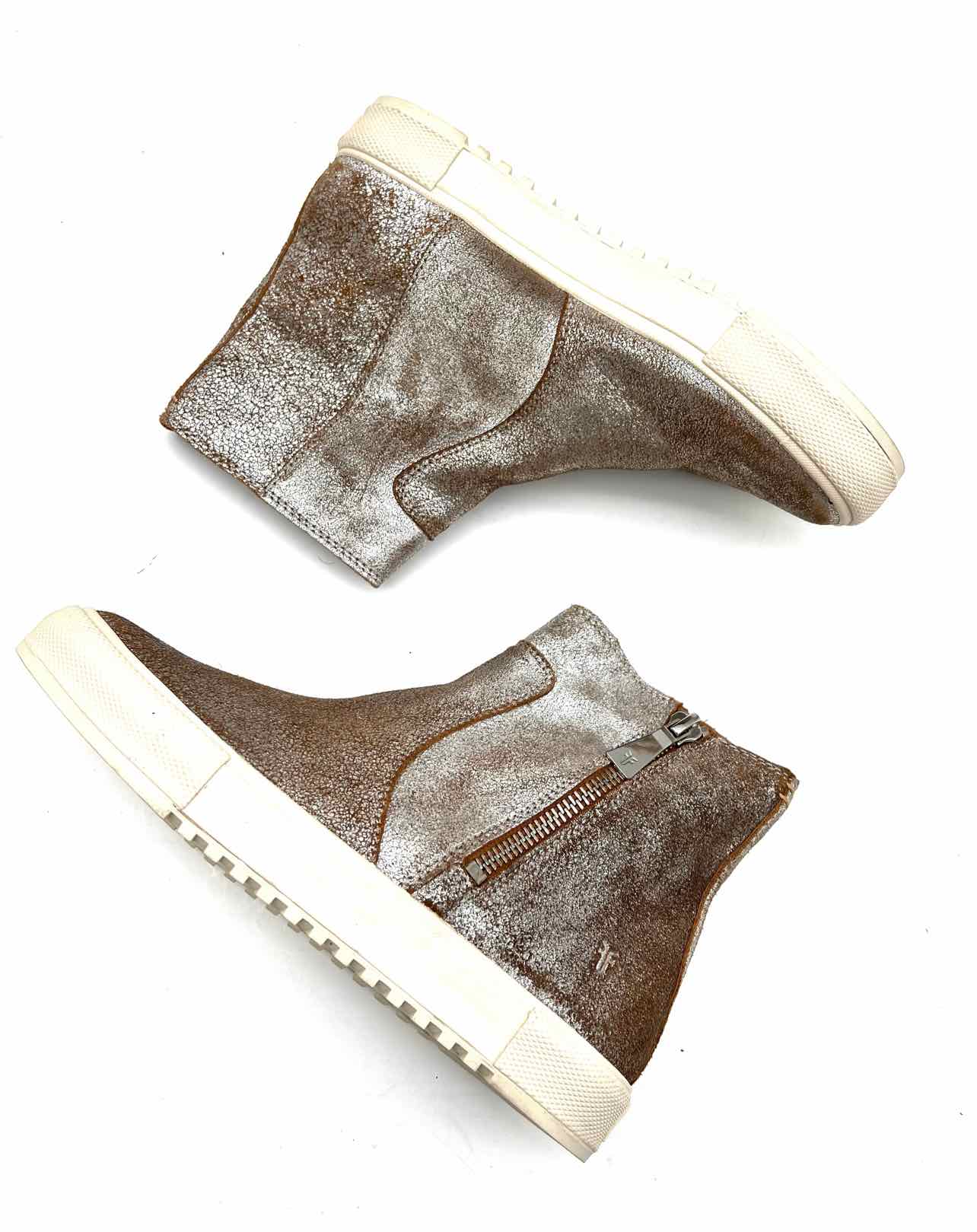 Frye Size 9.5 Silver/Brown Metallic Leather Shoes Short Boots