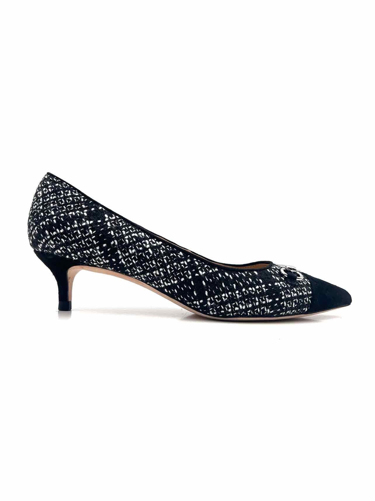 Talbots Size 8.5 Black/White Tweed Buckle(s) Shoes Heels