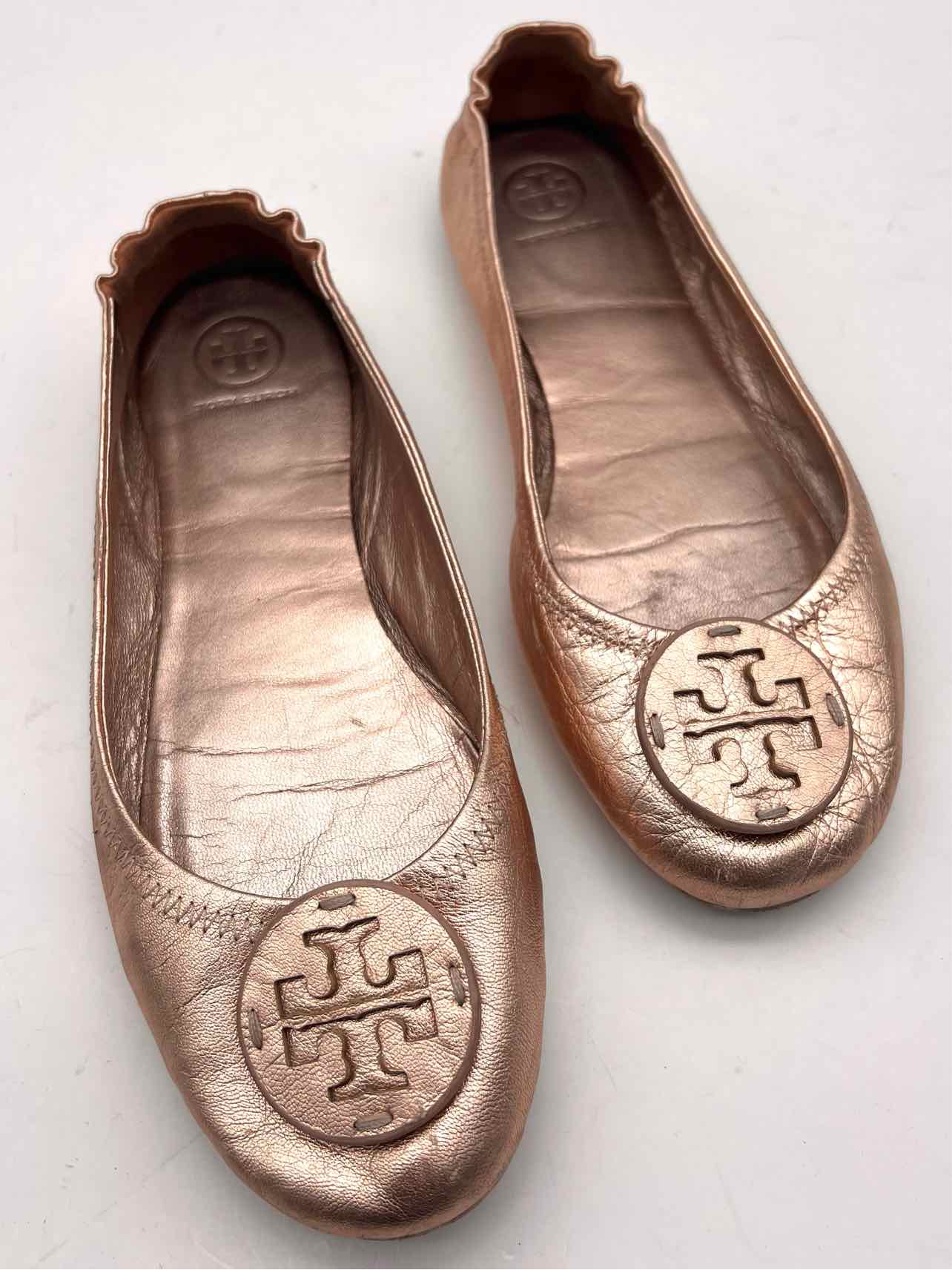 Tory Burch Size 9 Rose Gold Metallic Leather AS IS Shoes Flats