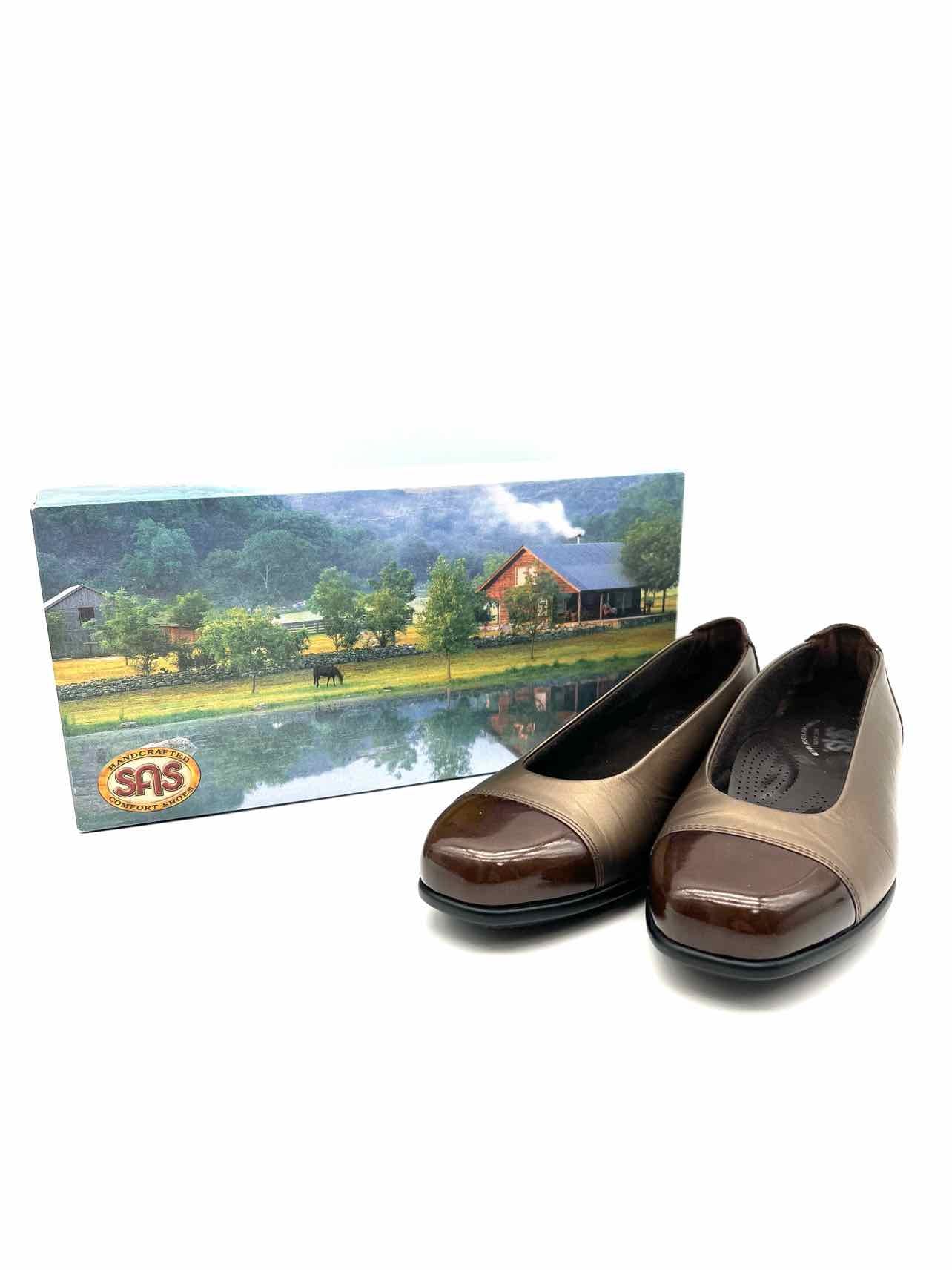 SAS Size 6 Taupe/Brown Blocked Leather Shoes Flats