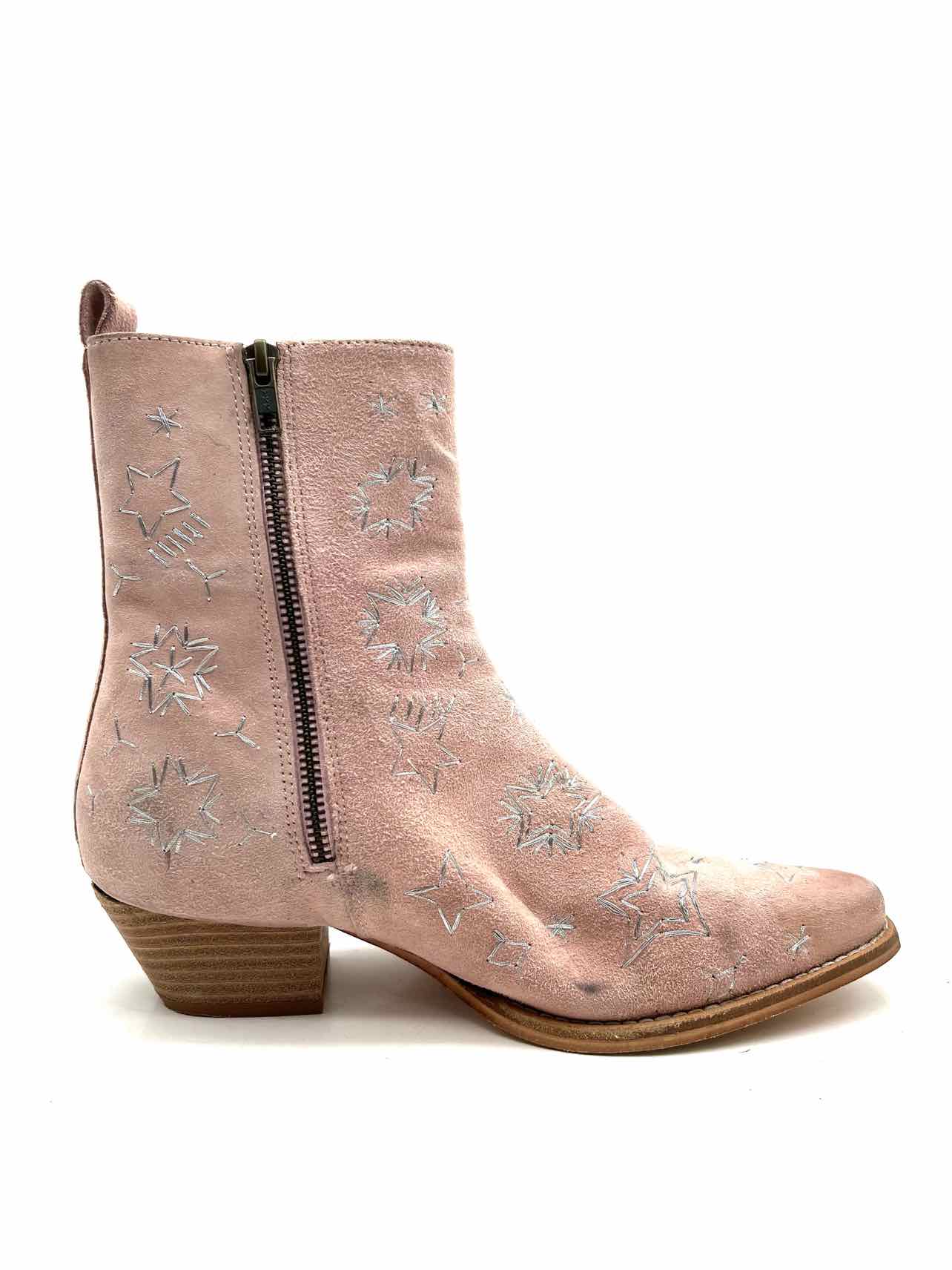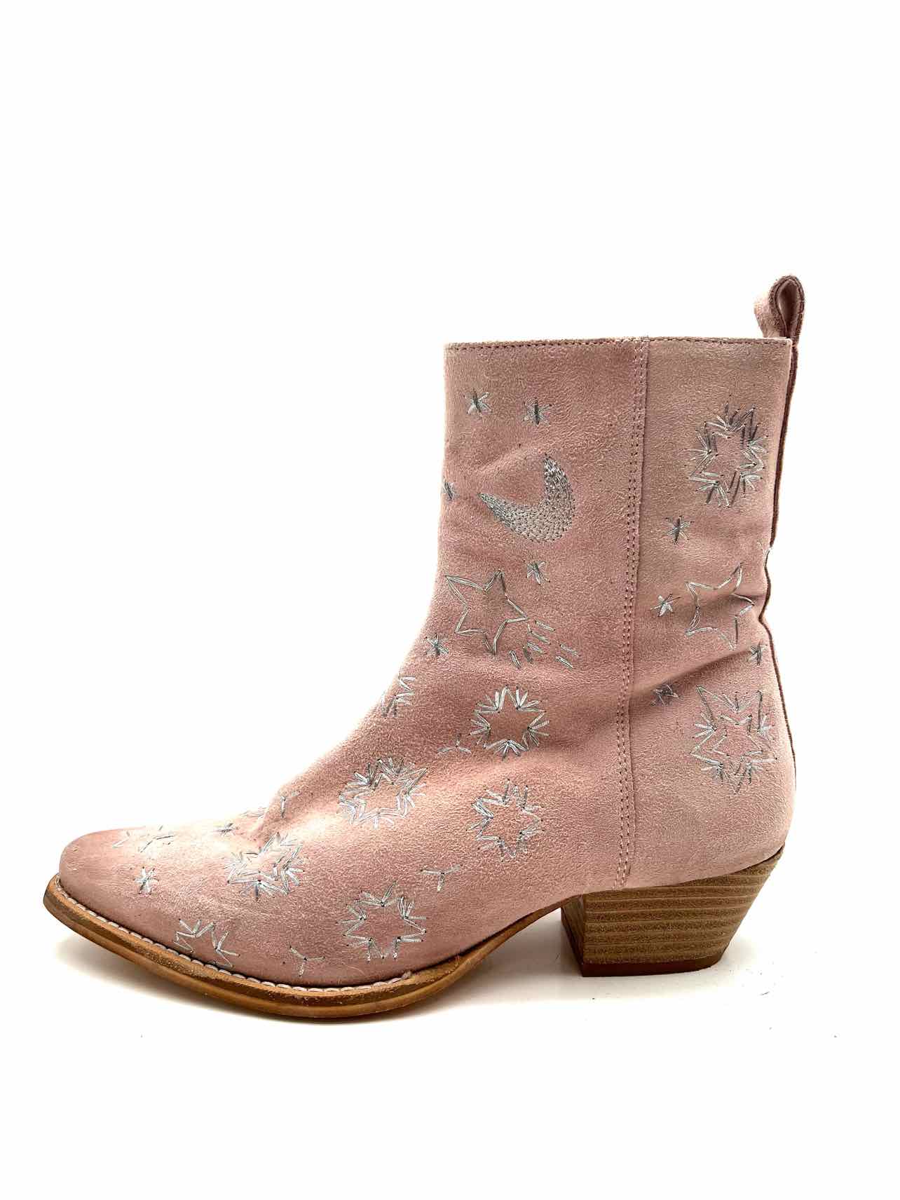 Free People Size 6.5 Blush/Silver Stars Embroidered Shoes Ankle Boots