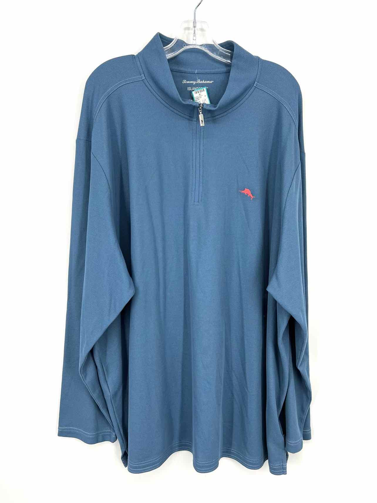 Tommy Bahama Size 3XLB Lt. Blue Quarter Zip Solid Men's Pullover- Men's