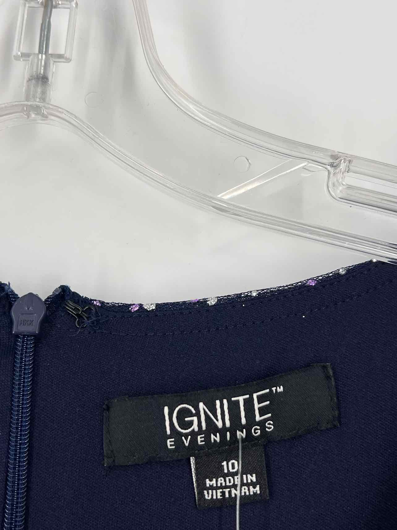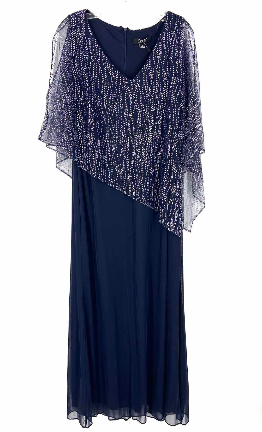 Ignite Evenings Size 10 Navy/Lavender Capelet Glitter Dress-Formal Wear
