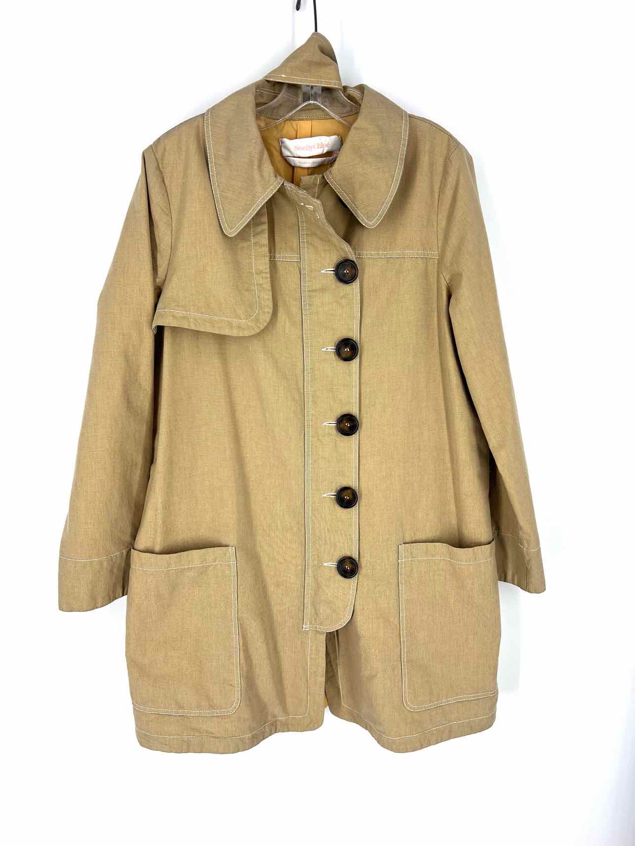See by Chloe Size L Khaki/Gray Variegated Belted Designer Trenchcoat