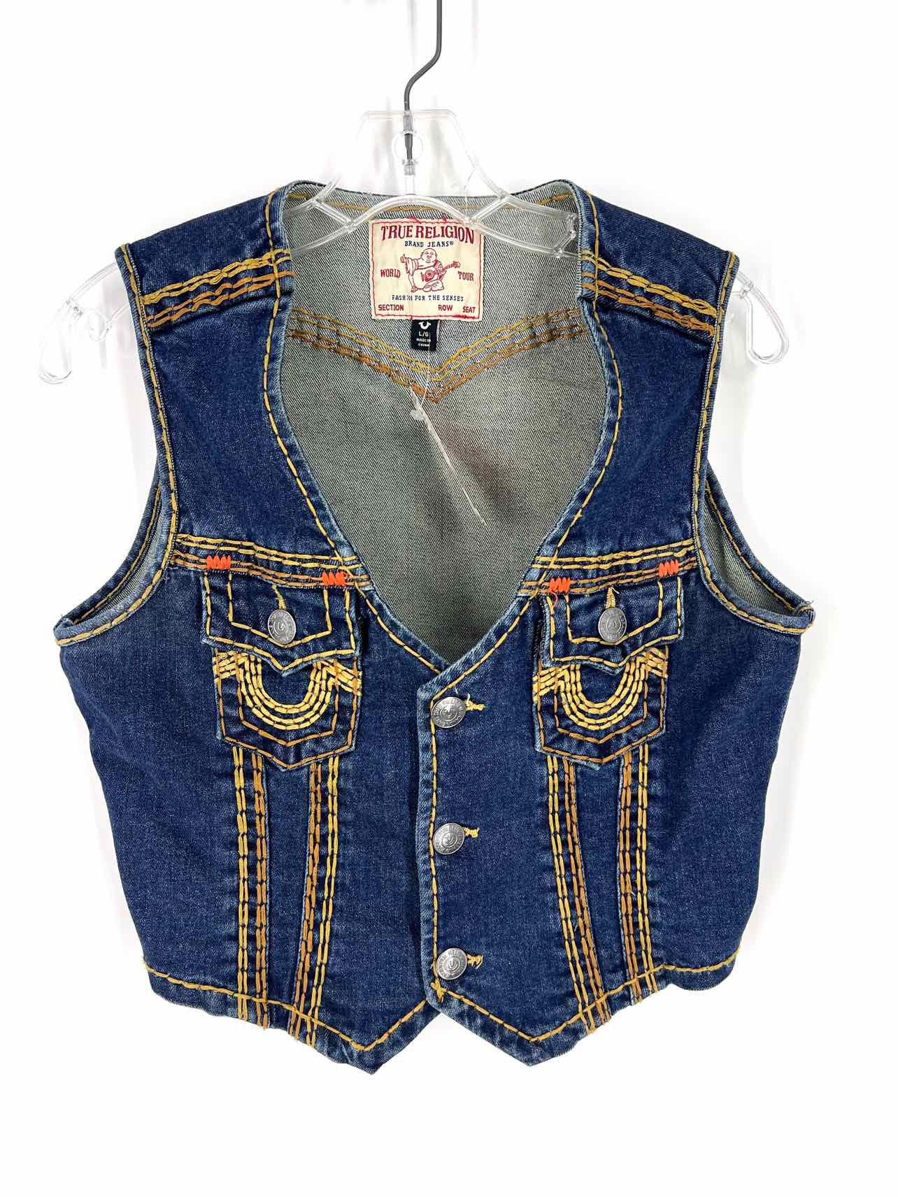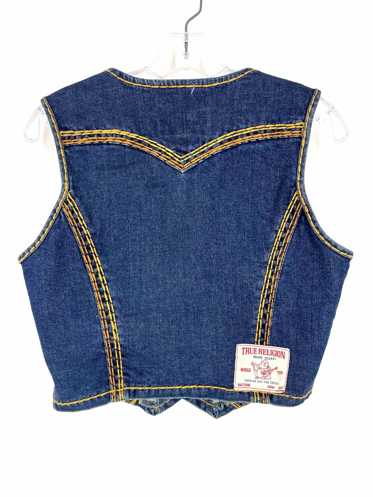 True Religion Size L Denim/Tan Stitched Vests Vest