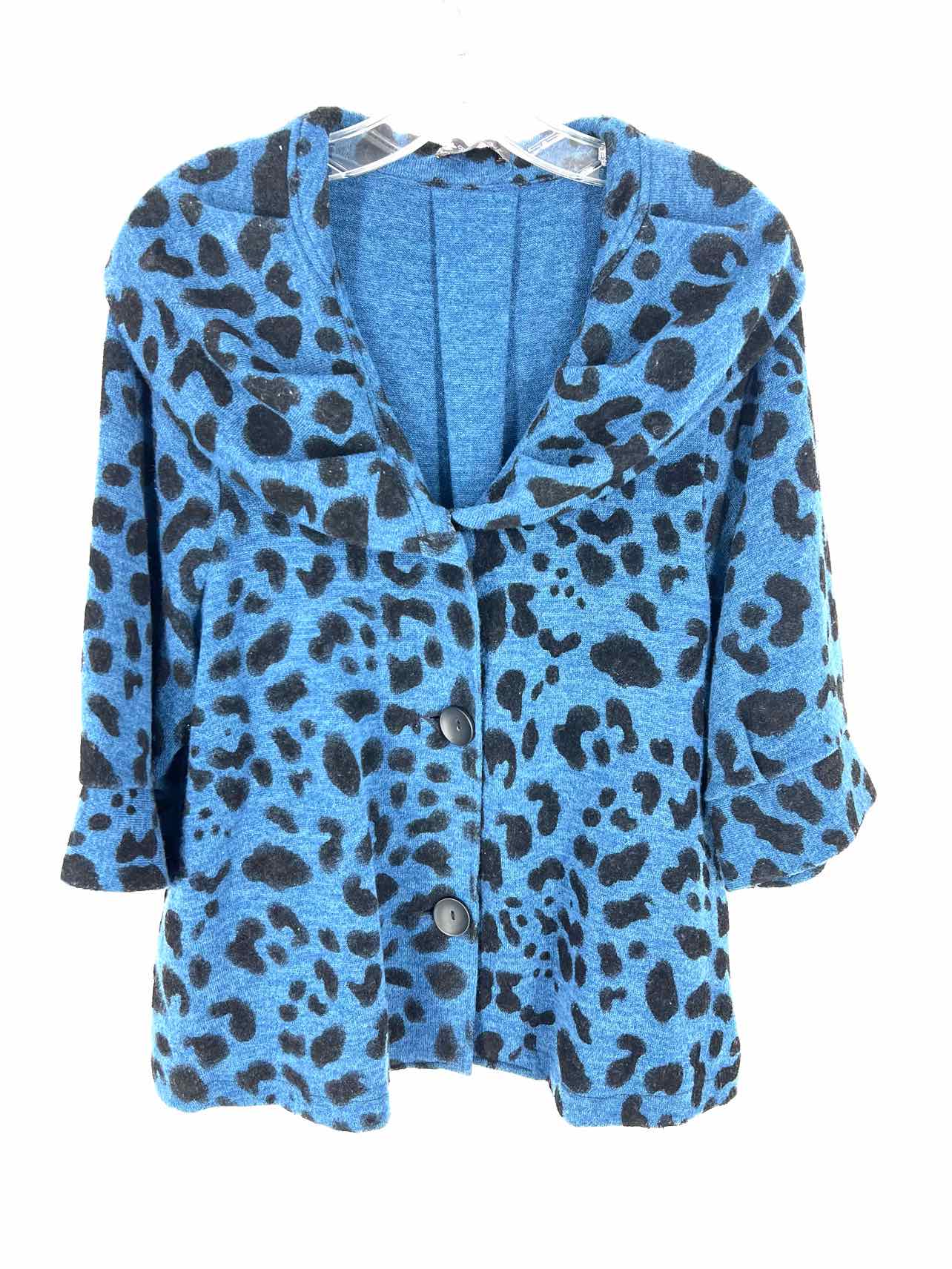 Damee Size L Dk Blue/Black Animal Print Knit Designer Jacket