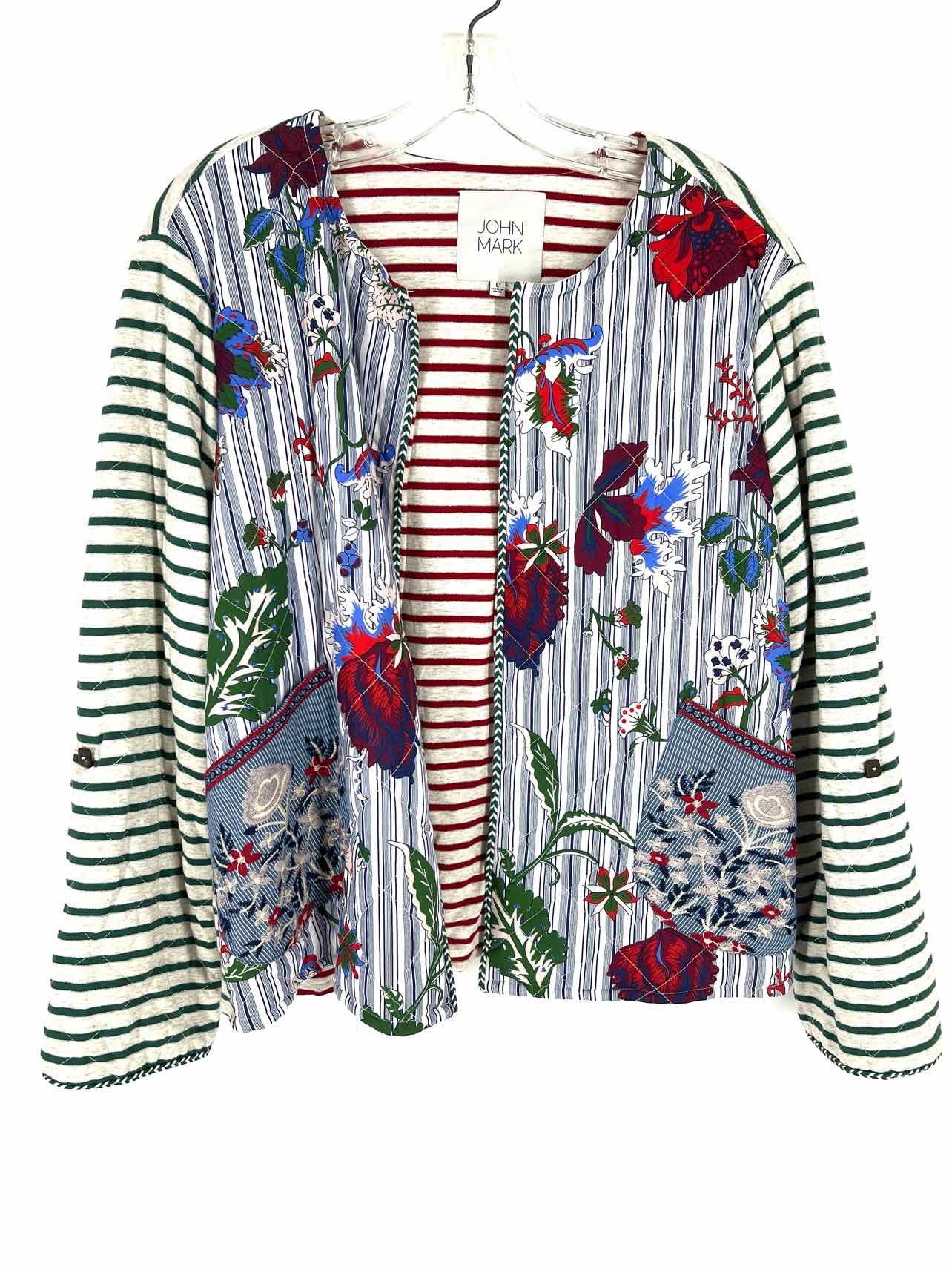 John Mark Size L White/Multi Multi-Print Blocked Designer Jacket