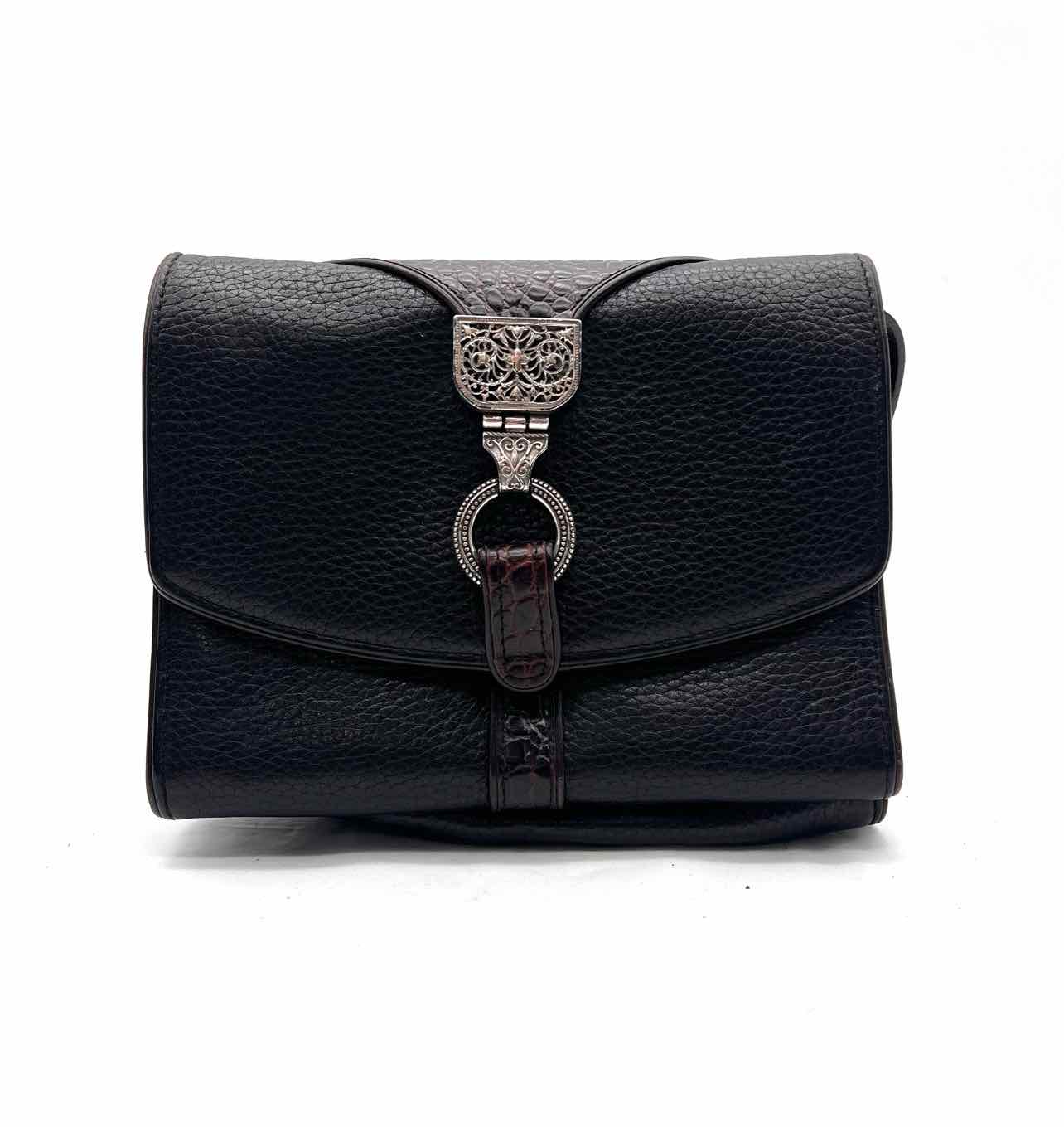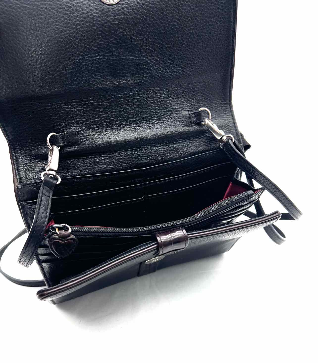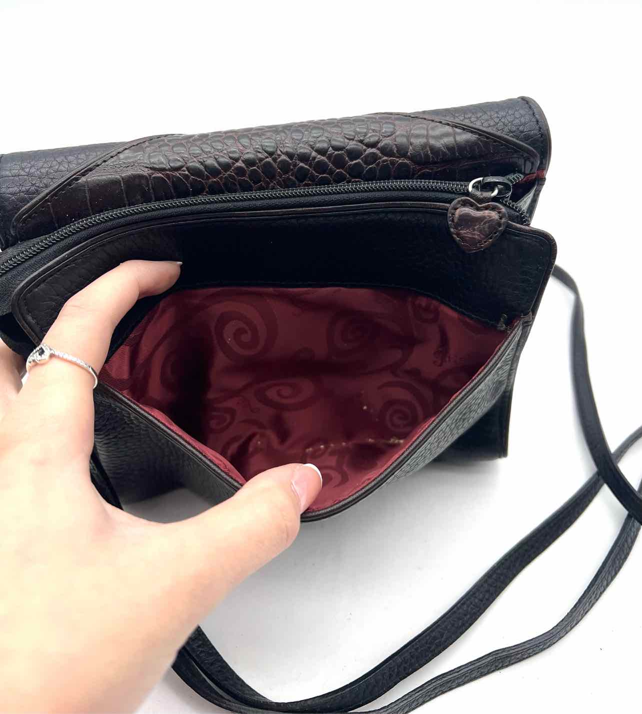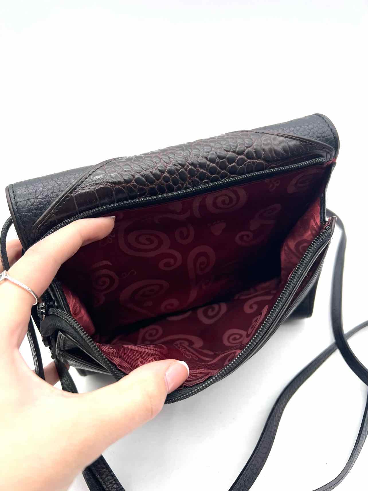Brighton Black/Brown Croc Embossed Leather Designer Crossbody Purse