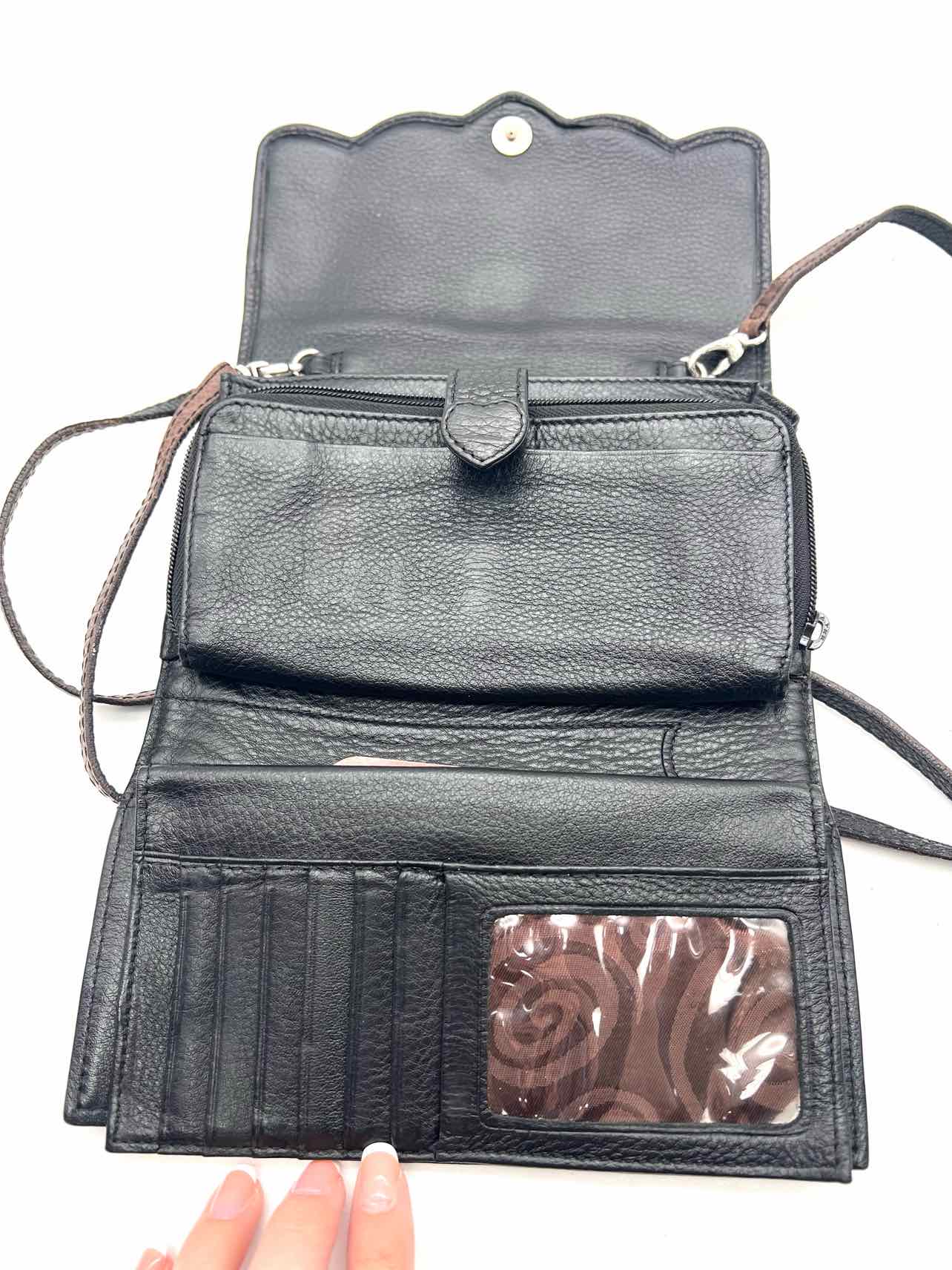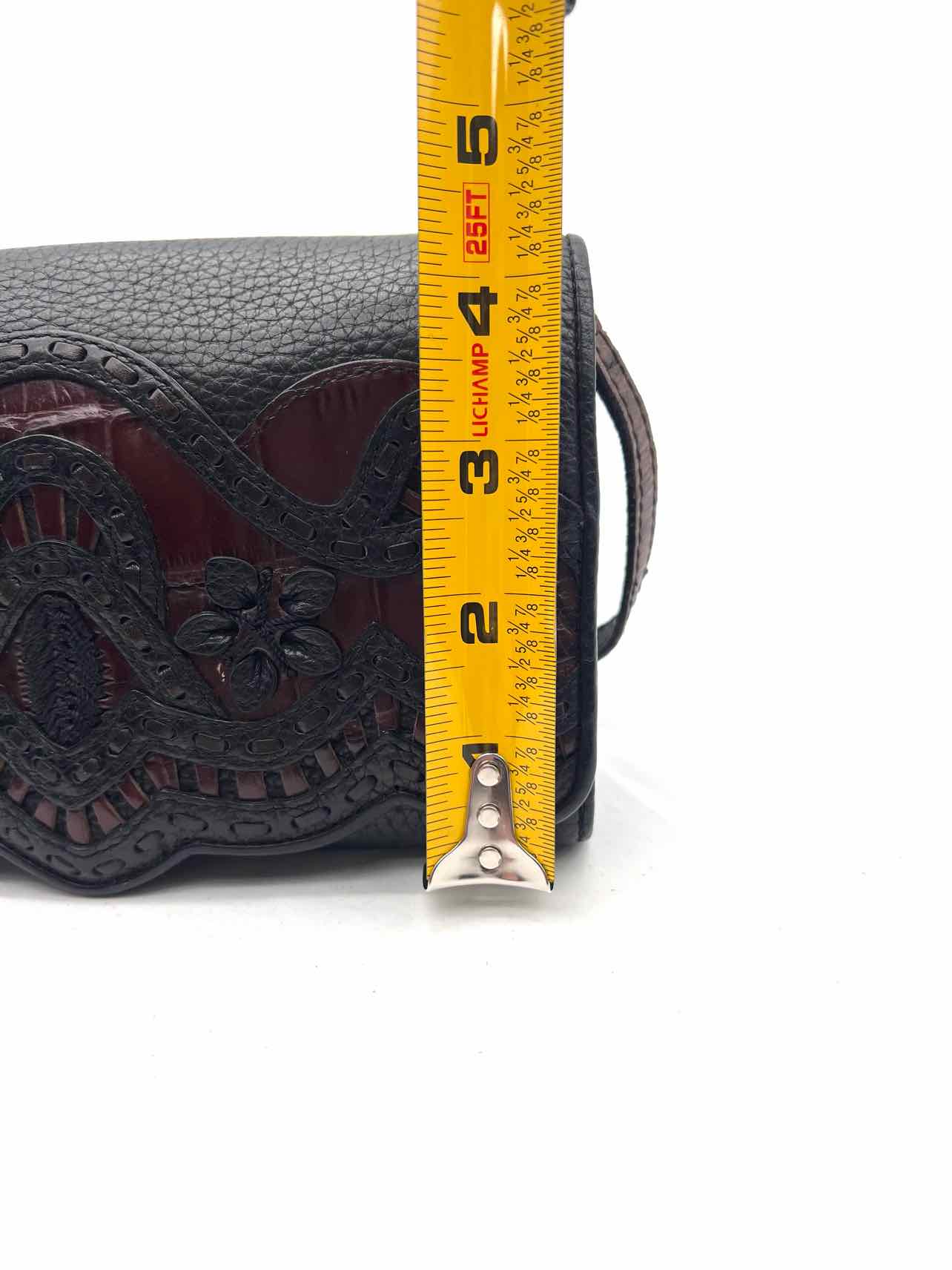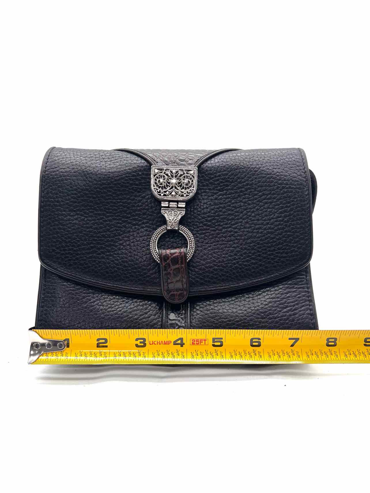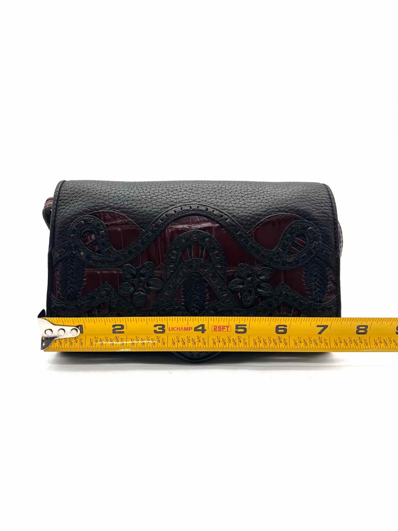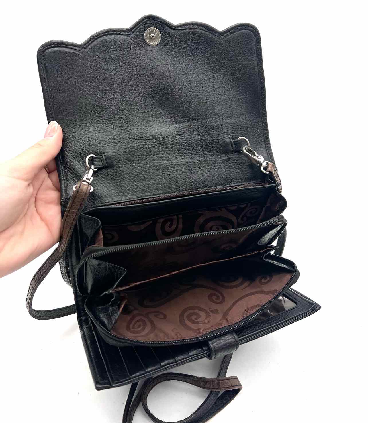 Brighton Black/Brown Croc Embossed Leather Designer Crossbody Purse