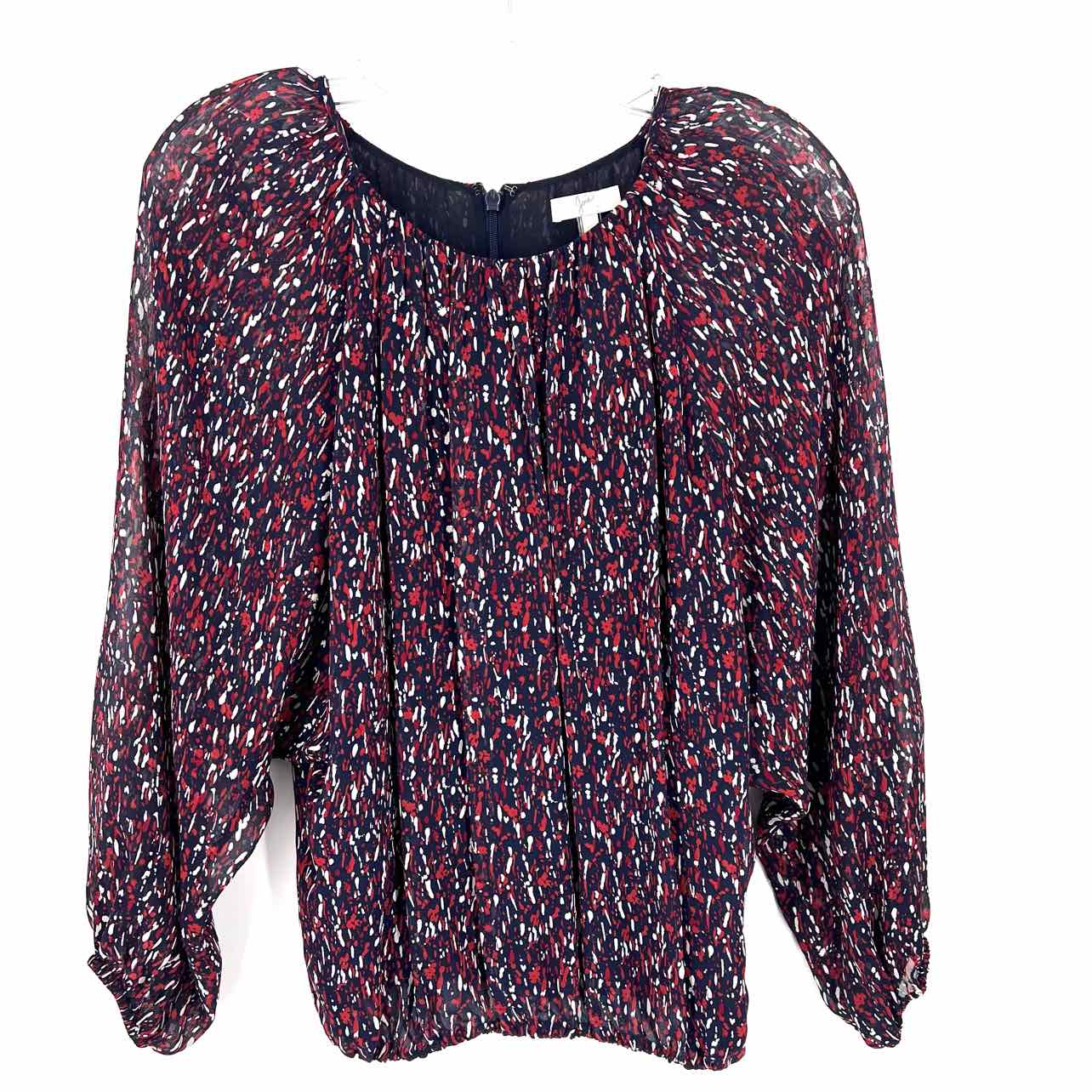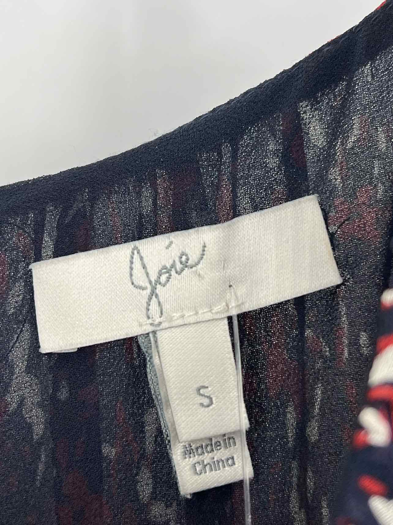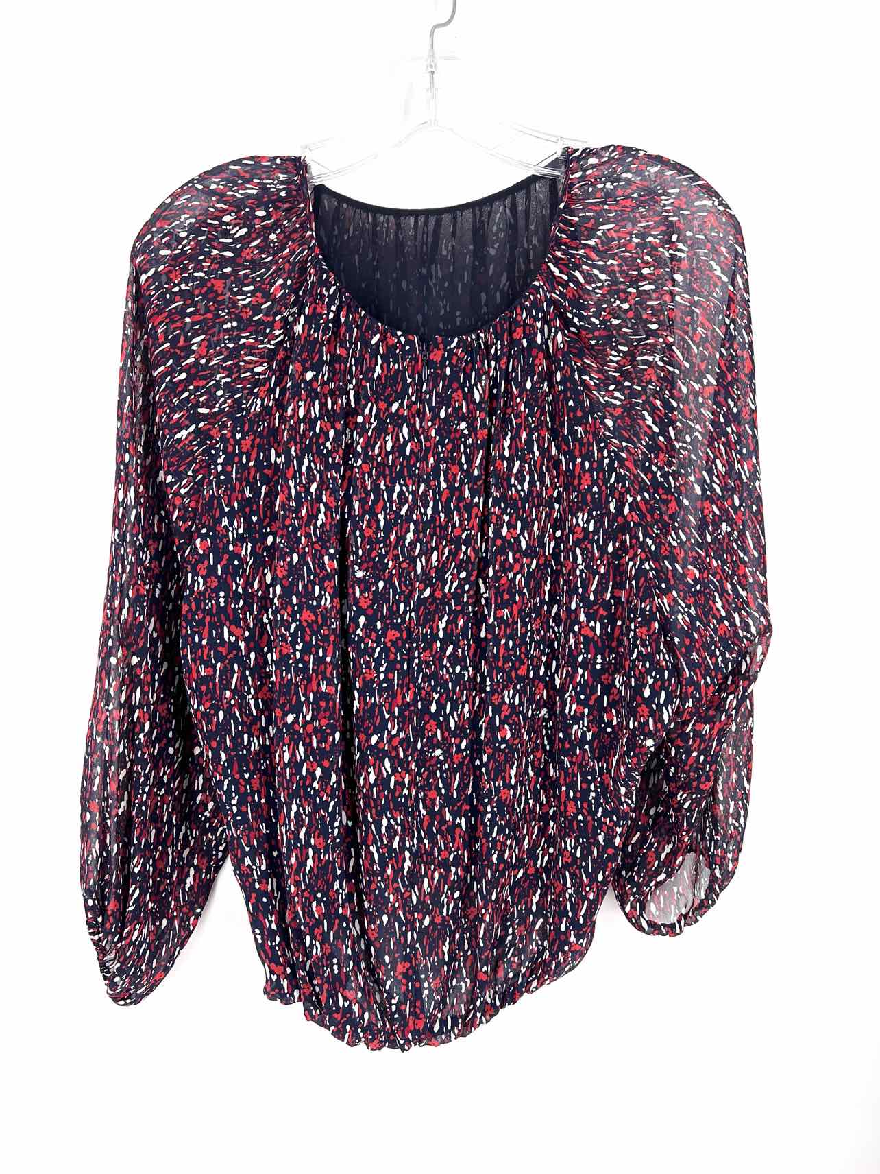 Joie Size S Navy/Red Print Silk Designer Top-3/4 Sleeve
