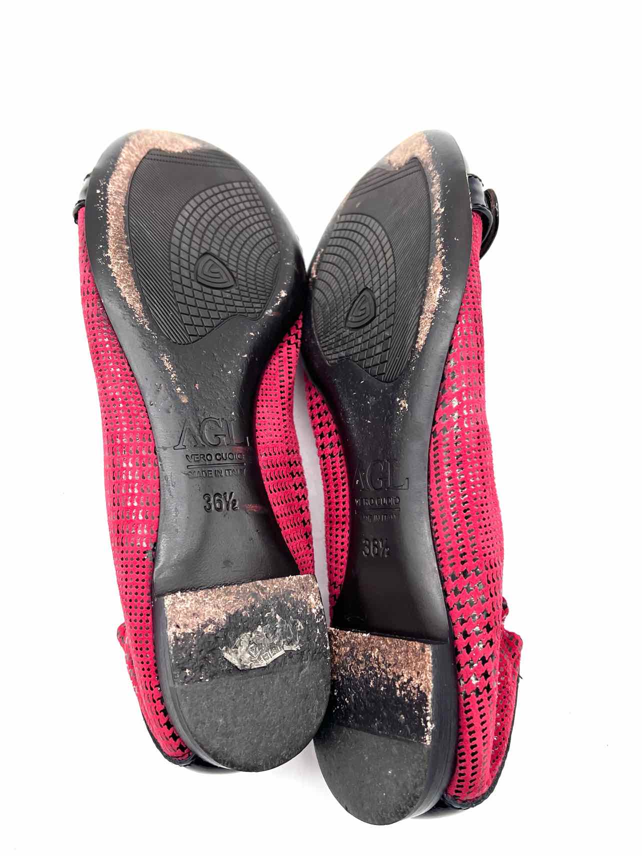 AGL Size 6.5 Red/Black Houndstooth Colorblock Designer Flats