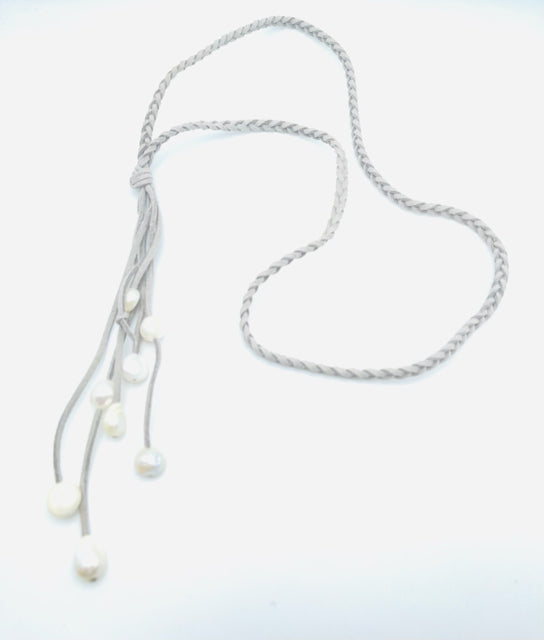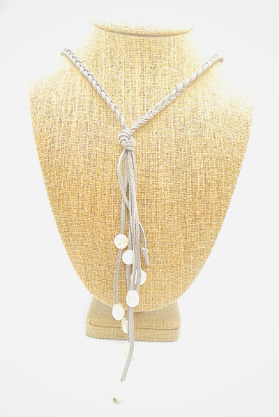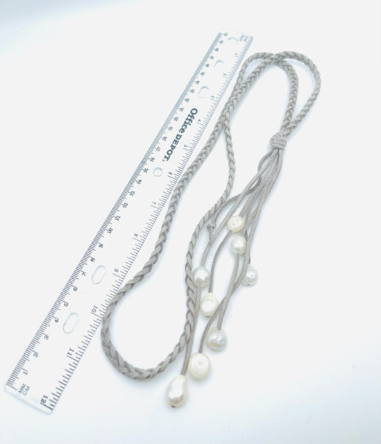 Gray/White Braided Freshwater Pearl Jewelry Necklace