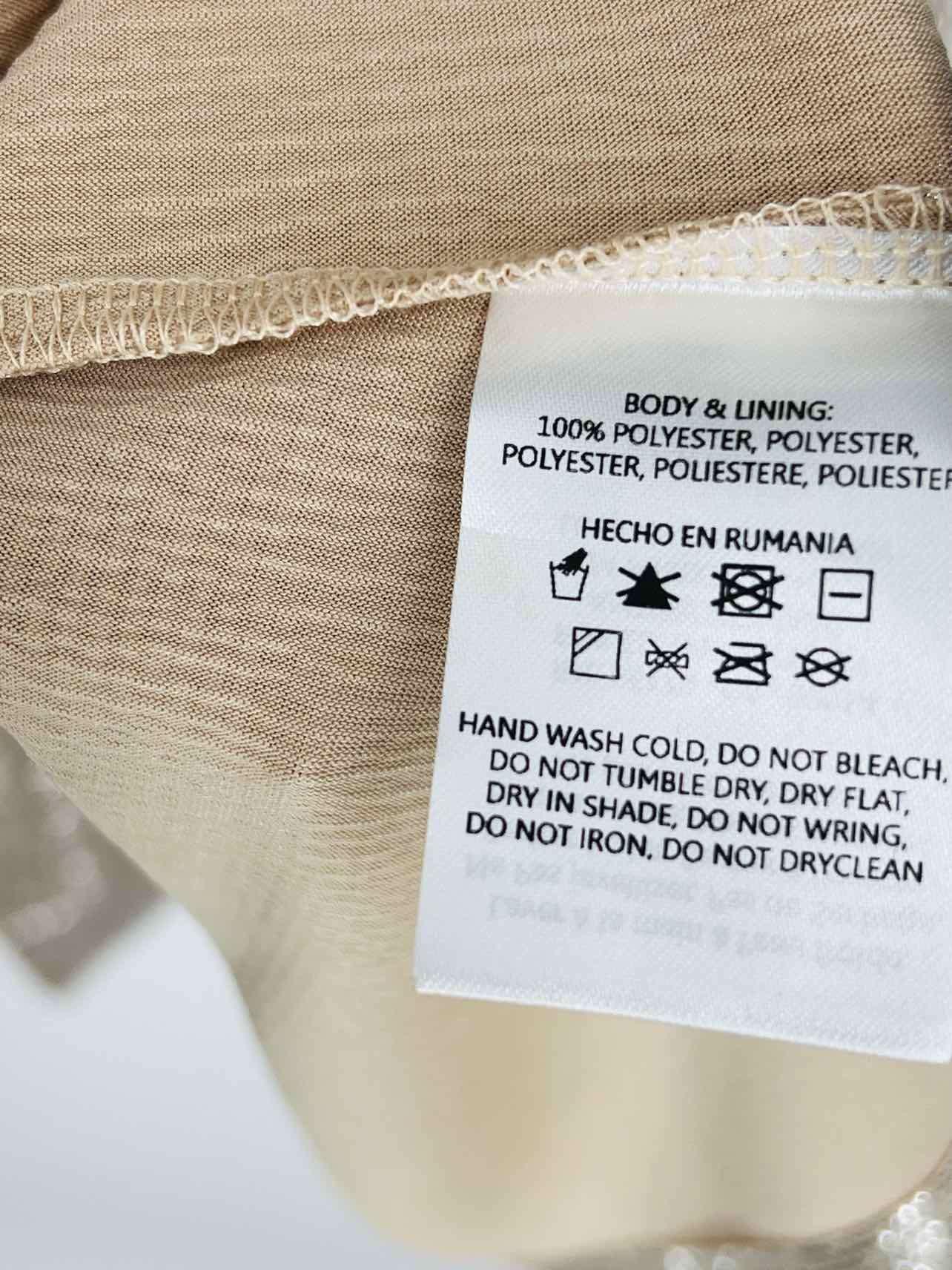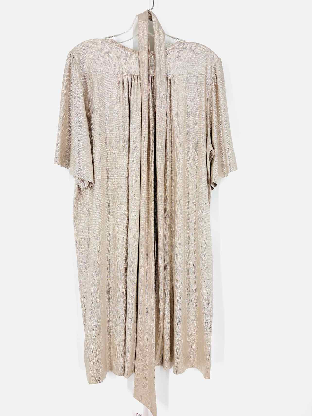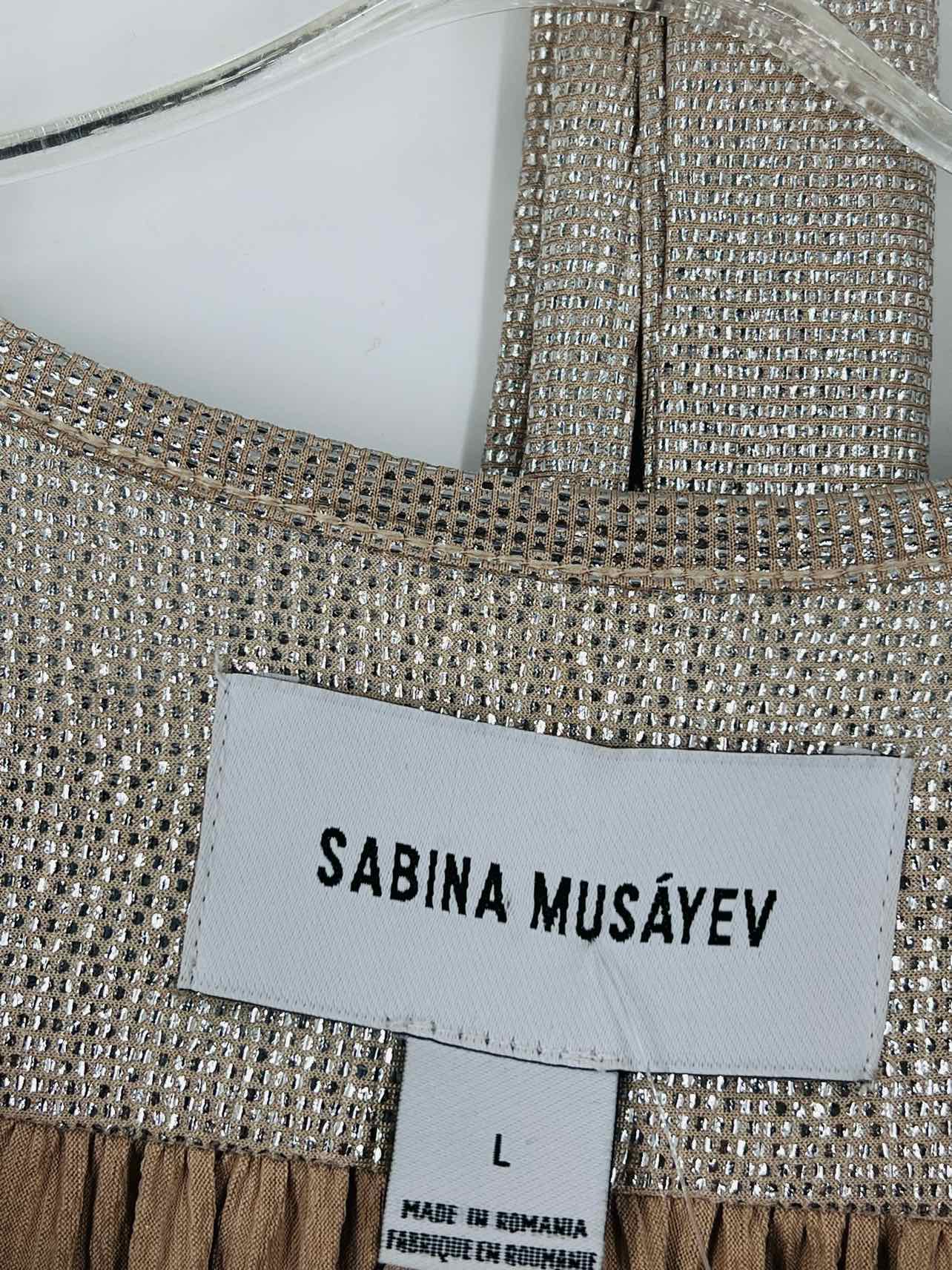 Sabina Musayev Size L Silver/Beige Metallic Buttons Belted Designer Dress